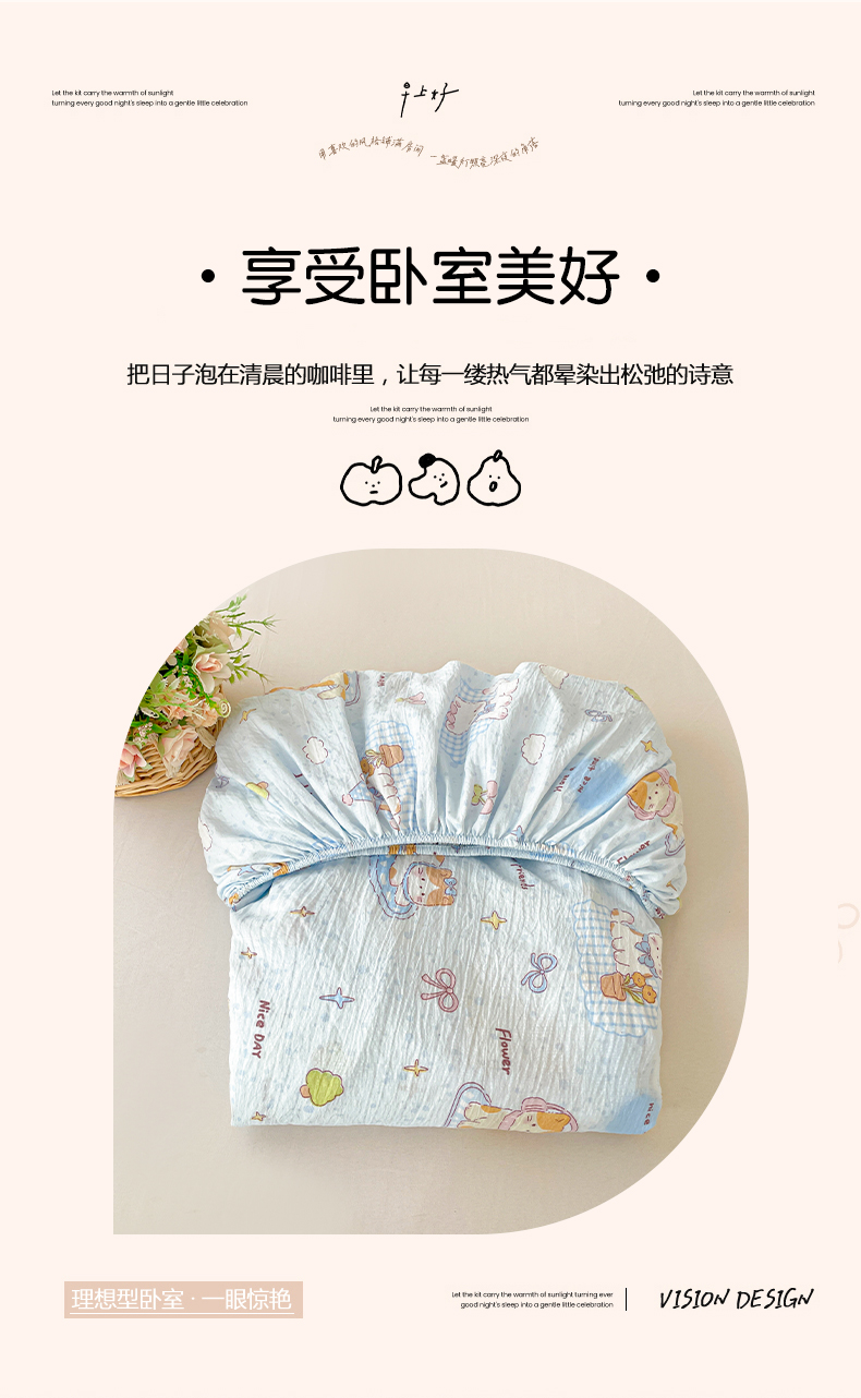 • 91家纺网 家纺一手货源 找家纺 立森 2026春夏新款云感皱皱纱泡芙纱床笠单枕套系列-床拍图 铅笔熊,铅笔熊