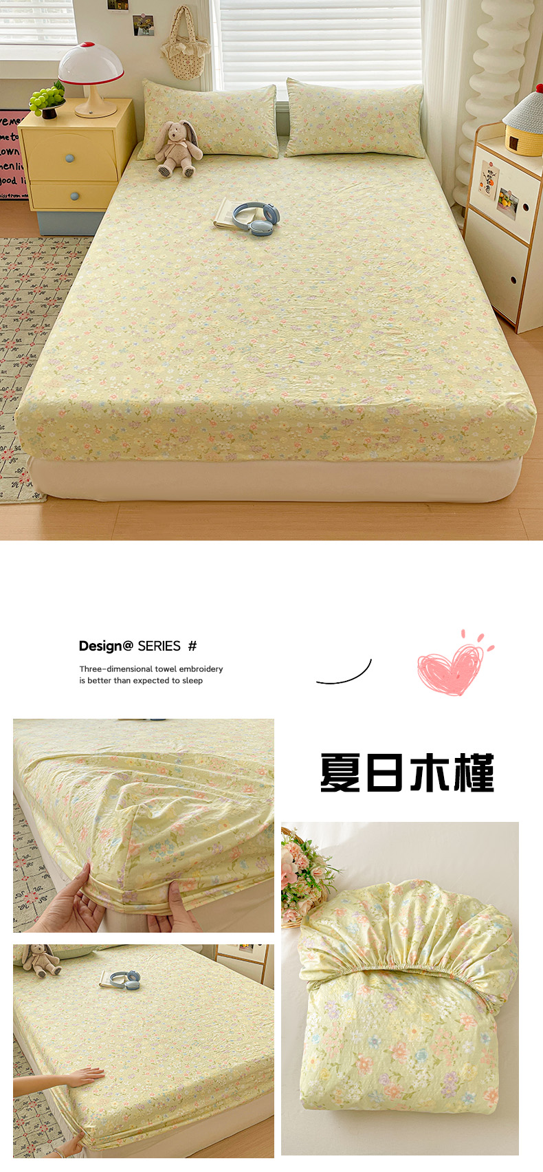 • 91家纺网 家纺一手货源 找家纺 立森 2026春夏新款云感皱皱纱泡芙纱床笠单枕套系列-床拍图 碎花萌宠,碎花萌宠