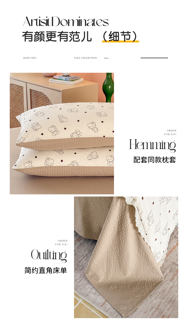 商品名称:艺菲阁家纺 2026新款A类泡芙棉夏凉被被子被芯 描线小猫-咖