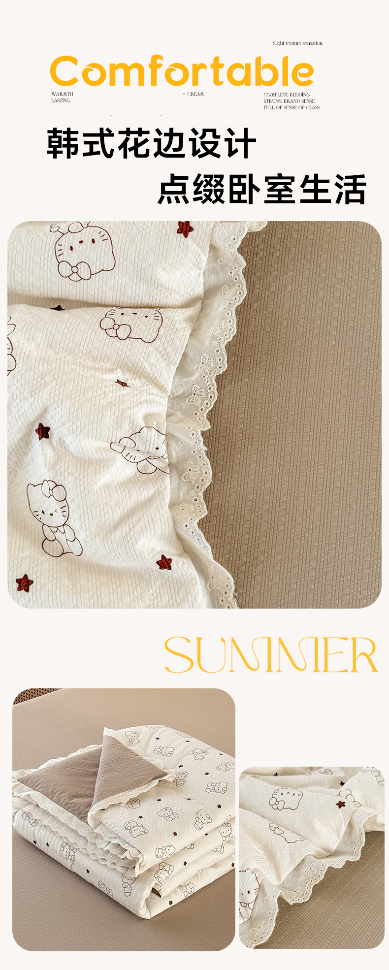 (总)艺菲阁家纺 2025新款卡通麻绳云感双层纱夏凉被,猫猫晚宴,猫咪恋人,奇妙小熊 咖,奇妙小熊米,兔子的欢喜,小猫时光-黄,小美冰淇淋,邮一颗草莓