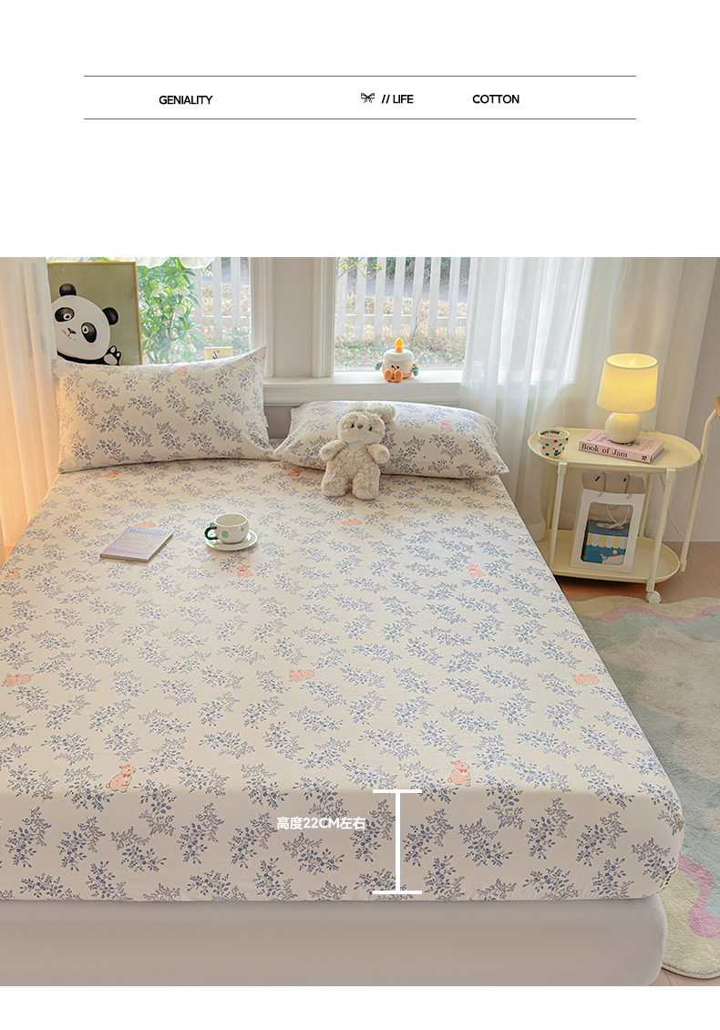 (总)莱登卡奴 2026新款A类100%全棉纯棉老粗布单床笠系列,艾伦,冰淇淋,花田初夏蓝,腊肠犬,蓝恐龙,菱格米,莫奈灰,奶酪,泡芙兰,企鹅,旺仔腊肠狗,醒春,丫丫,云初,枝叶,组合图 仅供参考