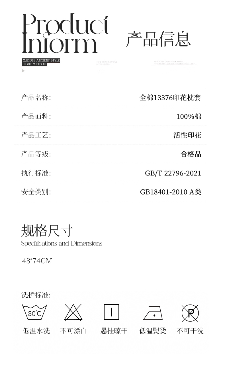 商品名称:宝齐莱家纺 2026新款全棉纯棉活性印花单枕套枕套单件 时光记忆