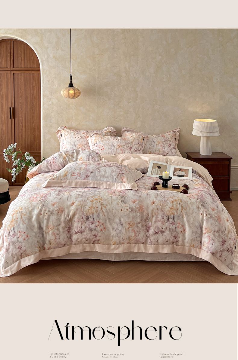 (总)金昱纺 2026新款全棉50S长绒棉数码印花宽边埋绳款四件套(带精美礼盒包装),叶栖-咖,黛秋-粉,花织软梦,摩卡-绿,甜梦花栖,榭风轻眠