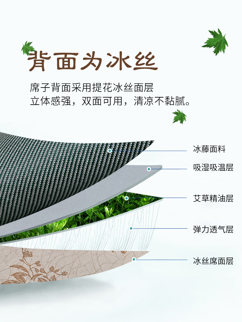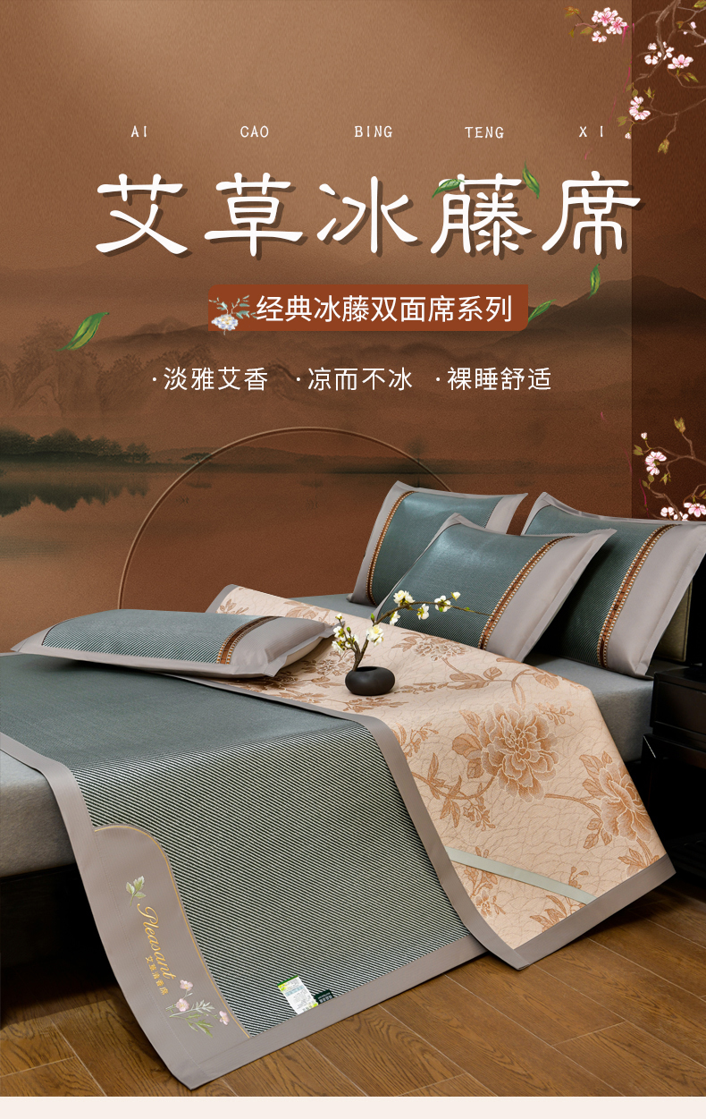 商品名称:小牛席业 2026新款艾草清香冰藤-双面席系列 艾草冰藤席-墨绿