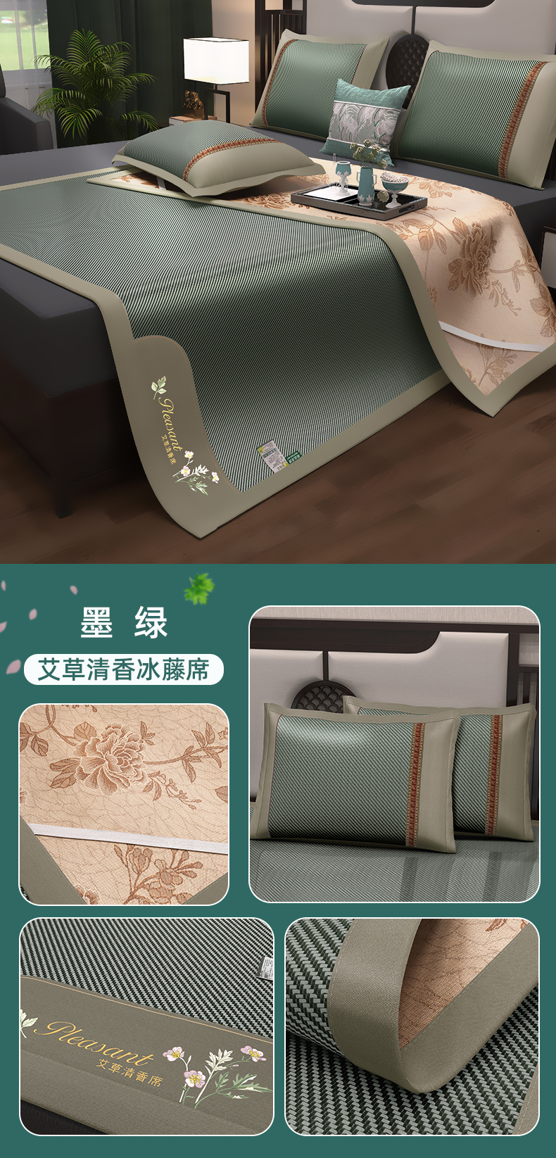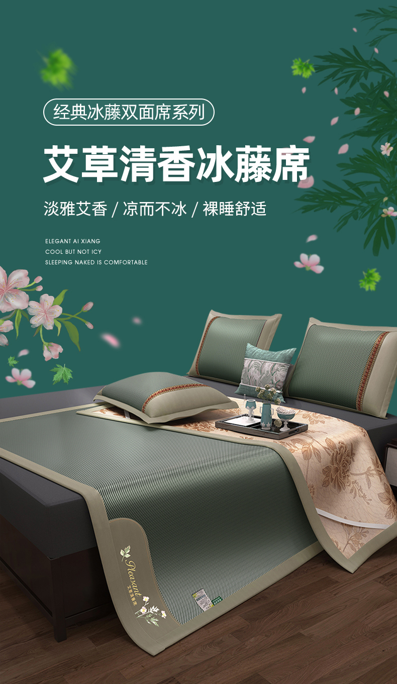 当前位置: 91家纺网 > 商品网购 > 床上用品 > 凉席 > 凉席套件 > 小牛席业 2026新款艾草清香冰藤-双面席系列(新风格) 艾草清香冰藤席-银灰