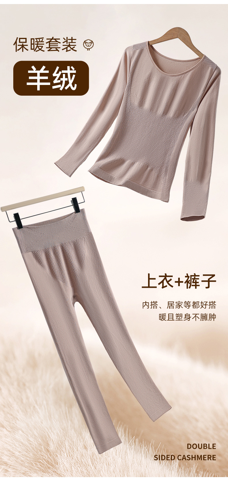 妍景家居生活馆 2026新款羊绒塑身保暖套装 松露咖
