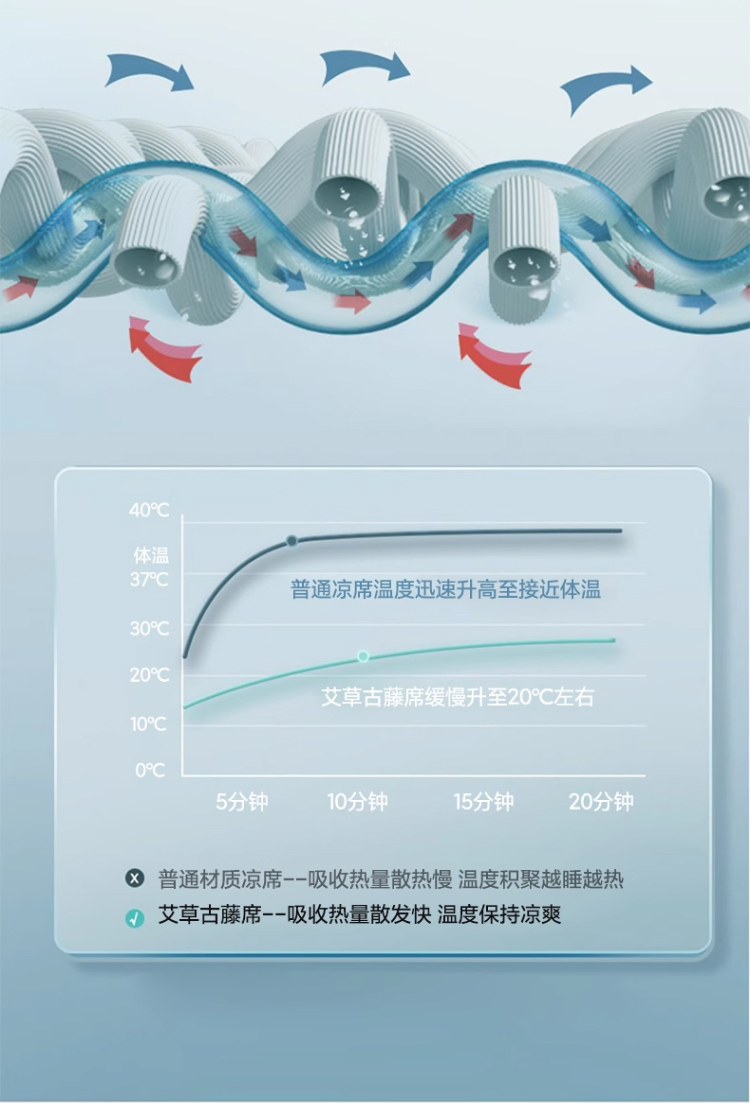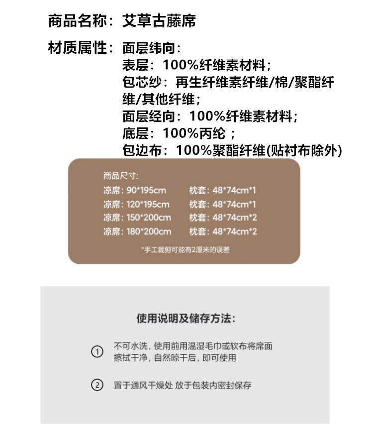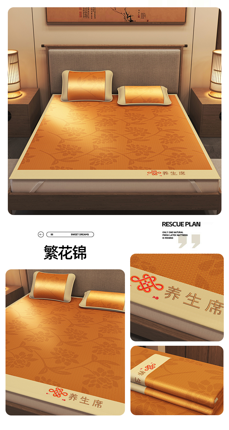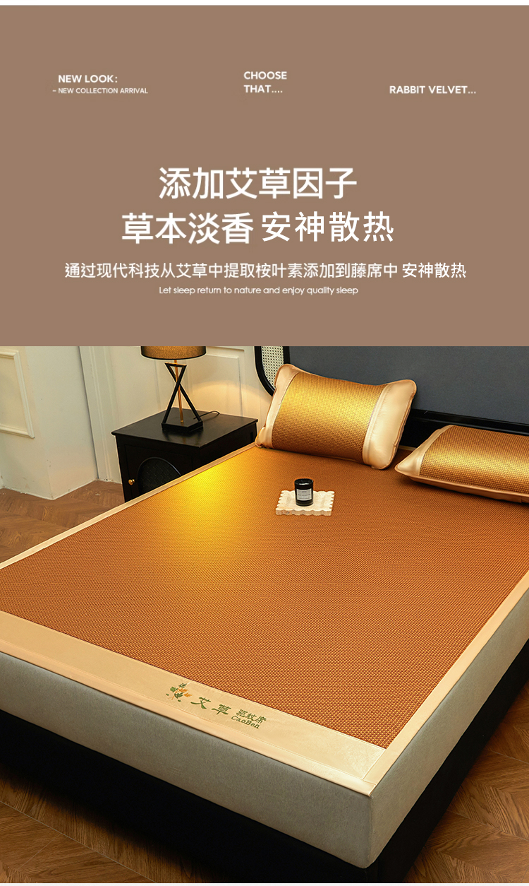商品名称:小桃姐家纺 2025新款舒适艾草刺绣藤席养身席单面席中国风凉席席子 艾草刺绣-罗马格