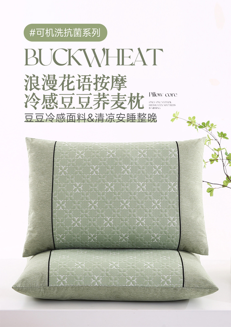 小牛席业 2026新款浪漫花语冷感豆豆【荞麦枕】 浪漫花语冷感豆豆夏凉枕(绿色)