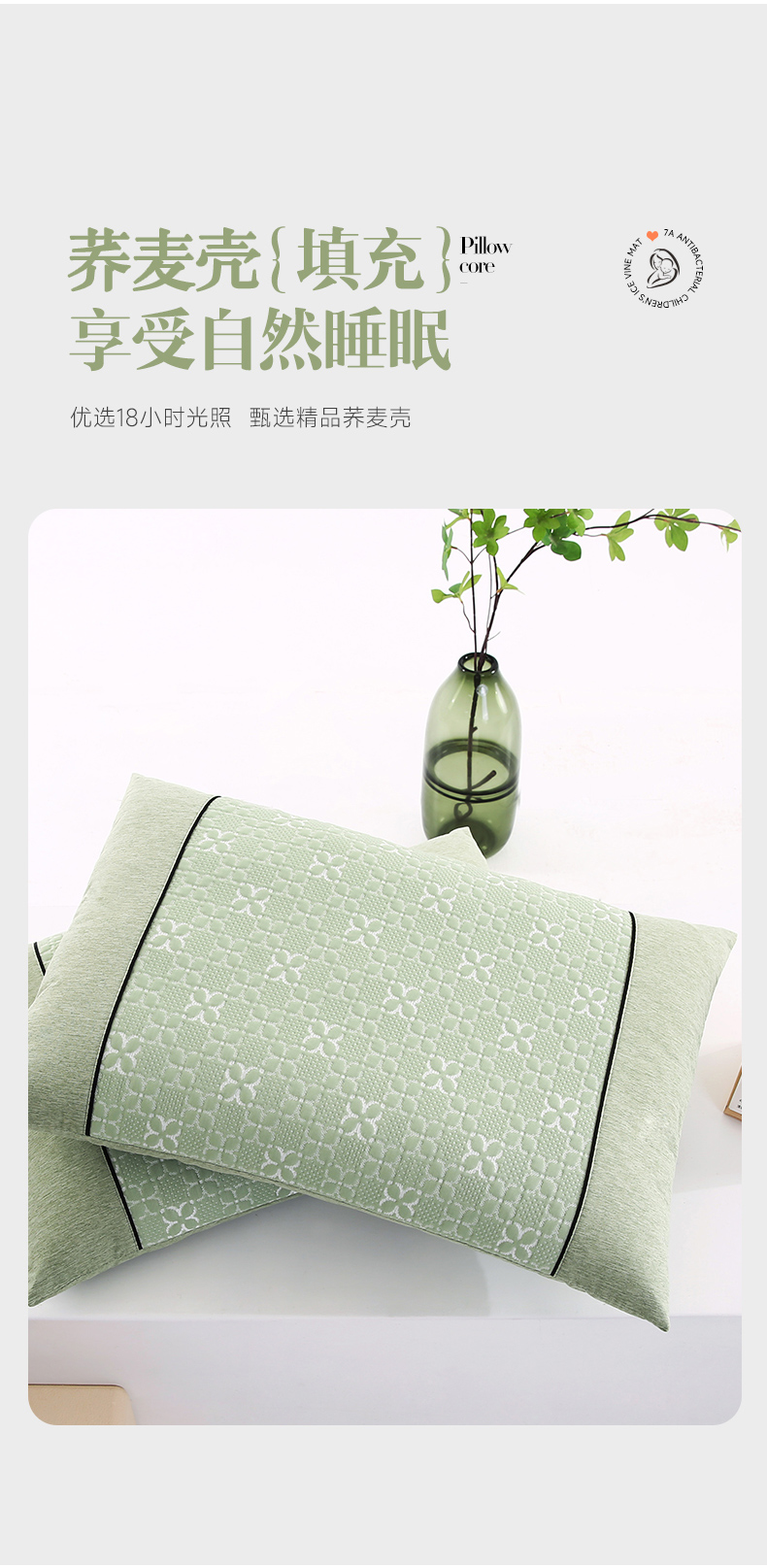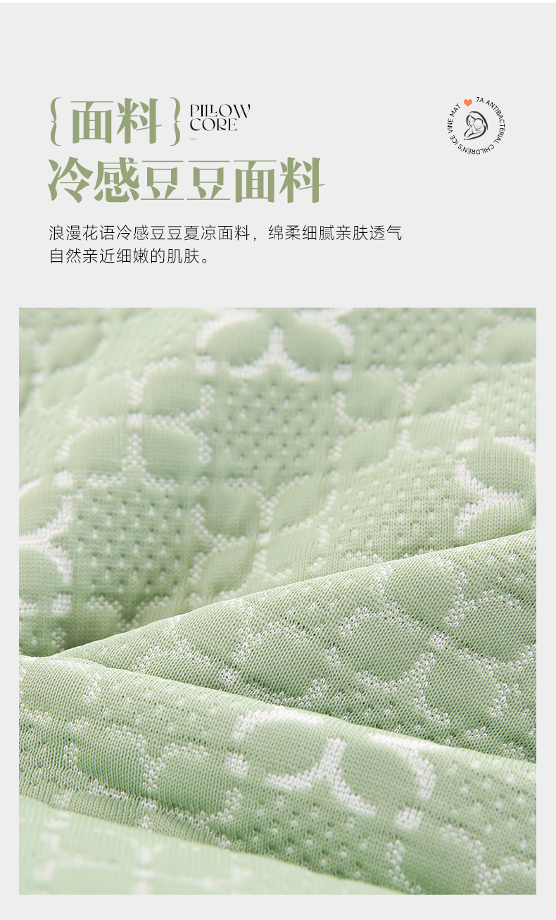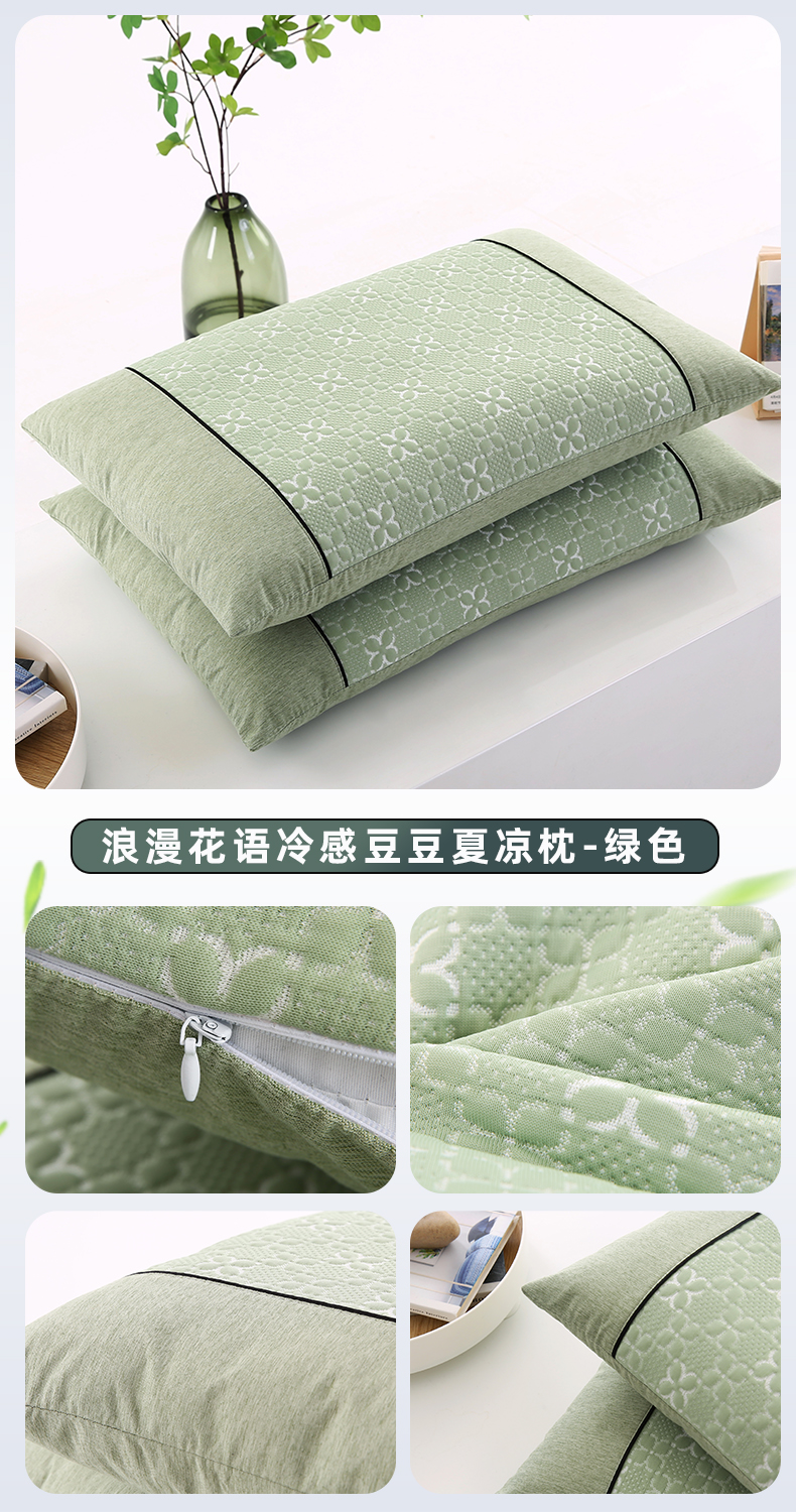 商品名称:小牛席业 2026新款浪漫花语冷感豆豆【荞麦枕】 浪漫花语冷感豆豆夏凉枕(绿色)