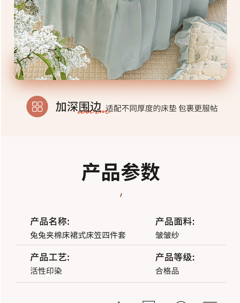 商品名称:禧缘家纺(原梦想家) 2026新款小清新皱皱纱木棉床裙式床笠印花四件套 童话