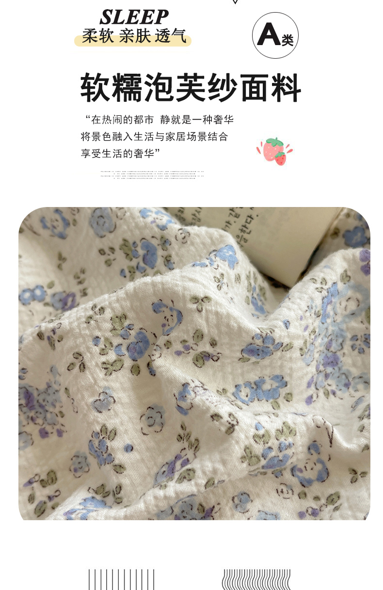 (总)迪梦姿家纺 2026新款高克重泡芙纱泡泡纱床单款四件套系列,兔仔花田,春日甜桃心米,纯宅熊,躲猫猫,花野兔眠,灰樱桃,旧街星星,猫咪集粉,莓系花伐,描线小猫咖,木马小花团,浅沙花影黄,浅沙花影蓝,田园兔,甜喵块块,甜心咖絮,甜心木马卷,小兔裙边,星野蝴蝶结,悦悦小兔,只闻花香,紫雾花蝶集