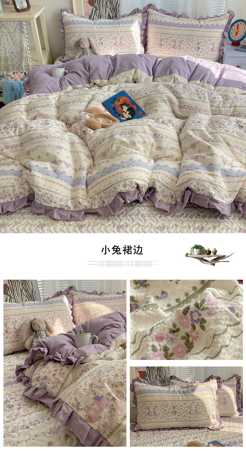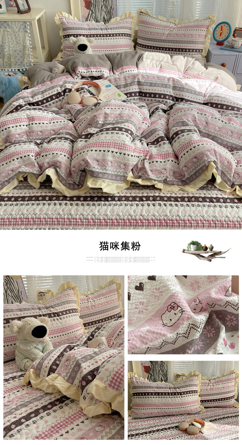 (总)迪梦姿家纺 2026新款高克重泡芙纱泡泡纱床盖款四件套系列,紫雾花蝶集,春日甜桃心米,纯宅熊,躲猫猫,花野兔眠,灰樱桃,旧街星星,猫咪集粉,莓系花伐,描线小猫咖,木马小花团,浅沙花影黄,浅沙花影蓝,田园兔,甜喵块块,甜心咖絮,甜心木马卷,兔仔花田,小兔裙边,星野蝴蝶结,悦悦小兔,只闻花香