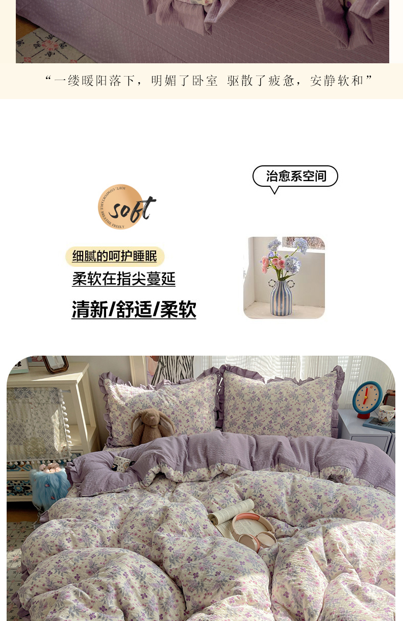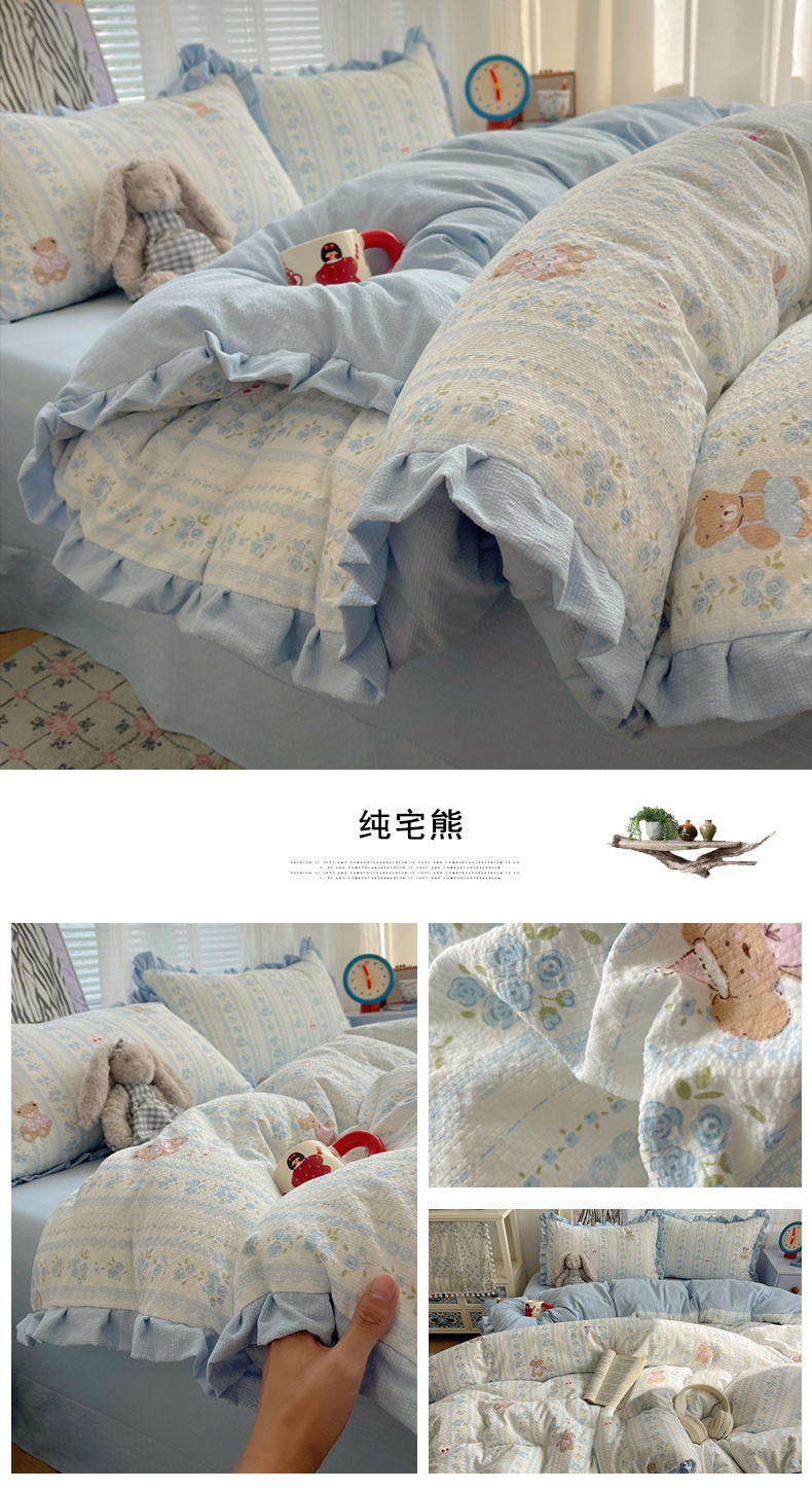 (总)迪梦姿家纺 2026新款高克重泡芙纱泡泡纱床盖款四件套系列,紫雾花蝶集,春日甜桃心米,纯宅熊,躲猫猫,花野兔眠,灰樱桃,旧街星星,猫咪集粉,莓系花伐,描线小猫咖,木马小花团,浅沙花影黄,浅沙花影蓝,田园兔,甜喵块块,甜心咖絮,甜心木马卷,兔仔花田,小兔裙边,星野蝴蝶结,悦悦小兔,只闻花香