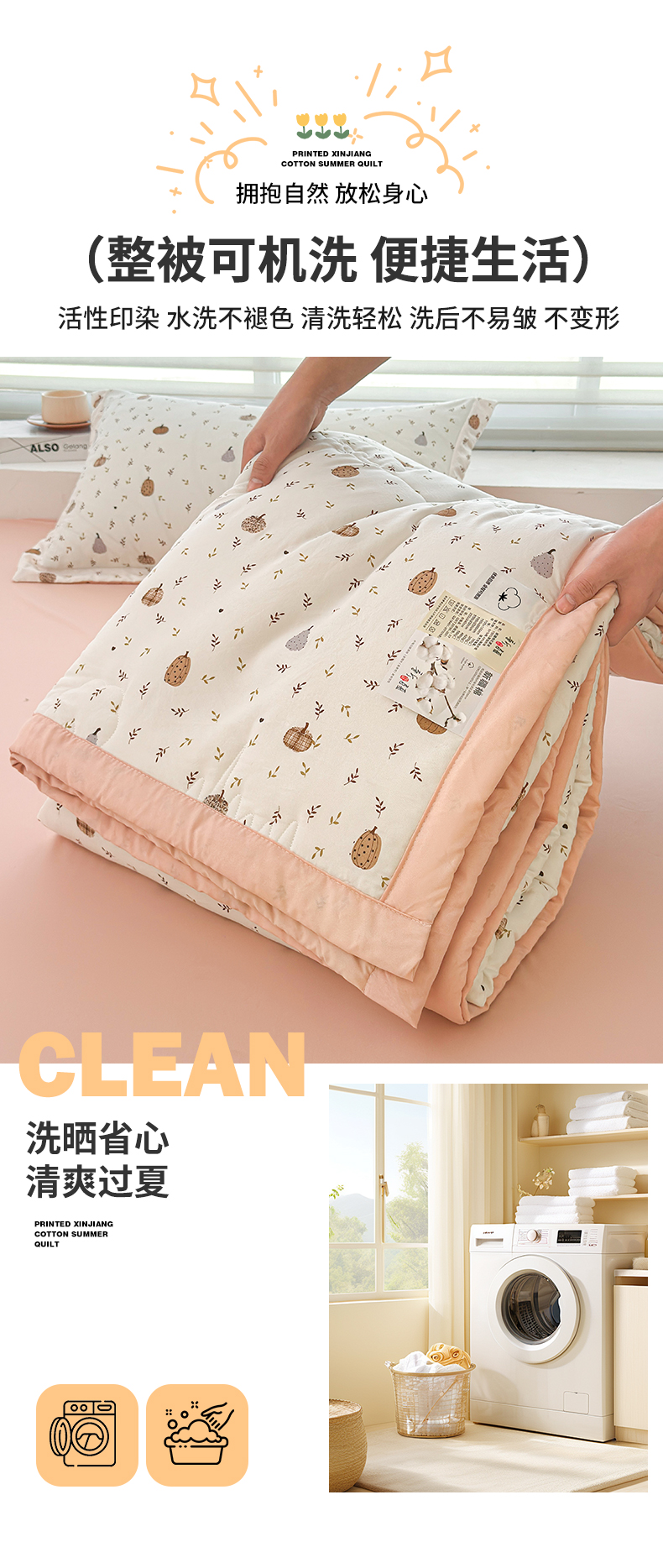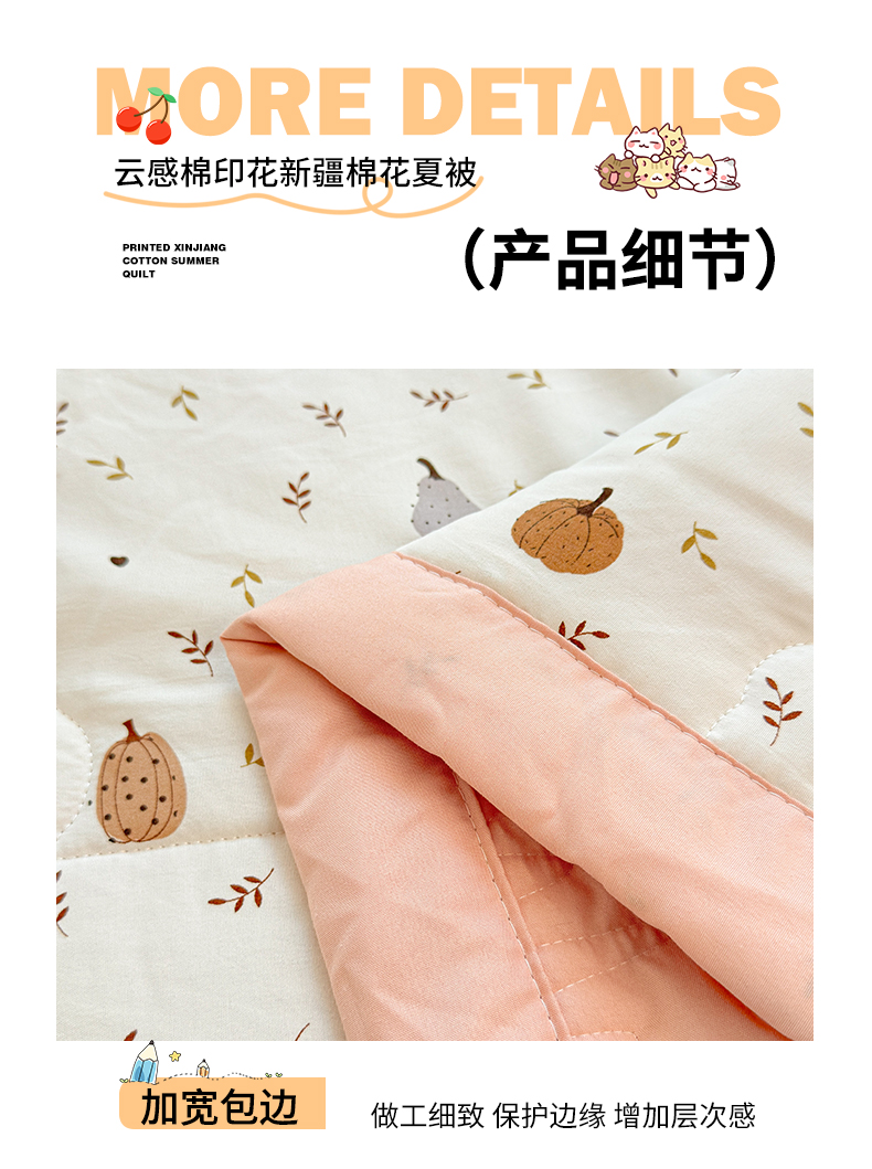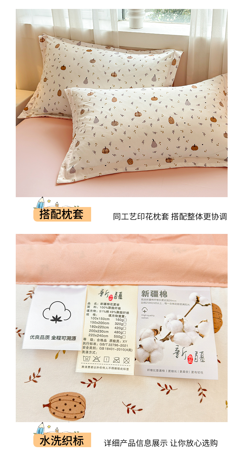 商品名称:2026新款A类新疆棉花夏凉被加宽包边水洗棉卡通印花吸湿透气棉花夏被空调被 凌香 心怡南瓜
