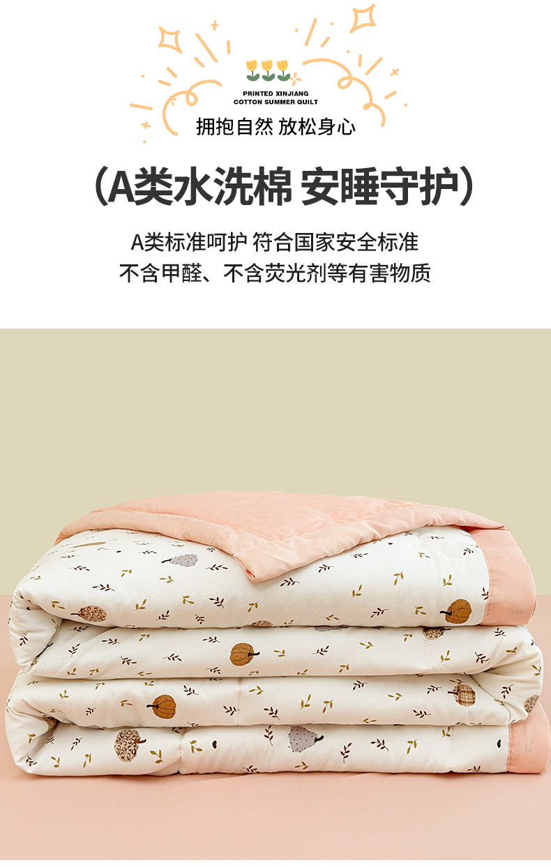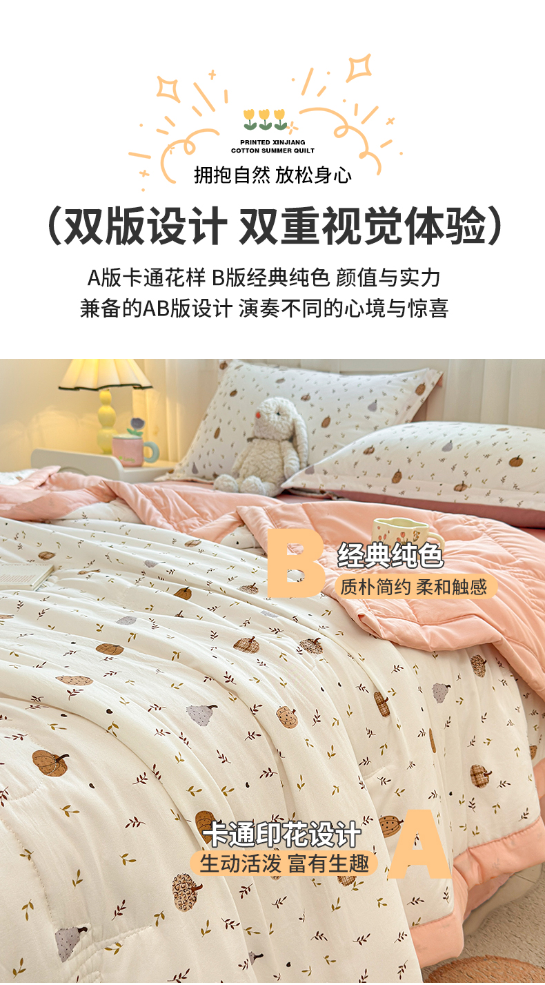 2026新款A类新疆棉花夏凉被加宽包边水洗棉卡通印花吸湿透气棉花夏被空调被 凌香 心怡南瓜