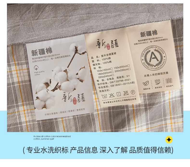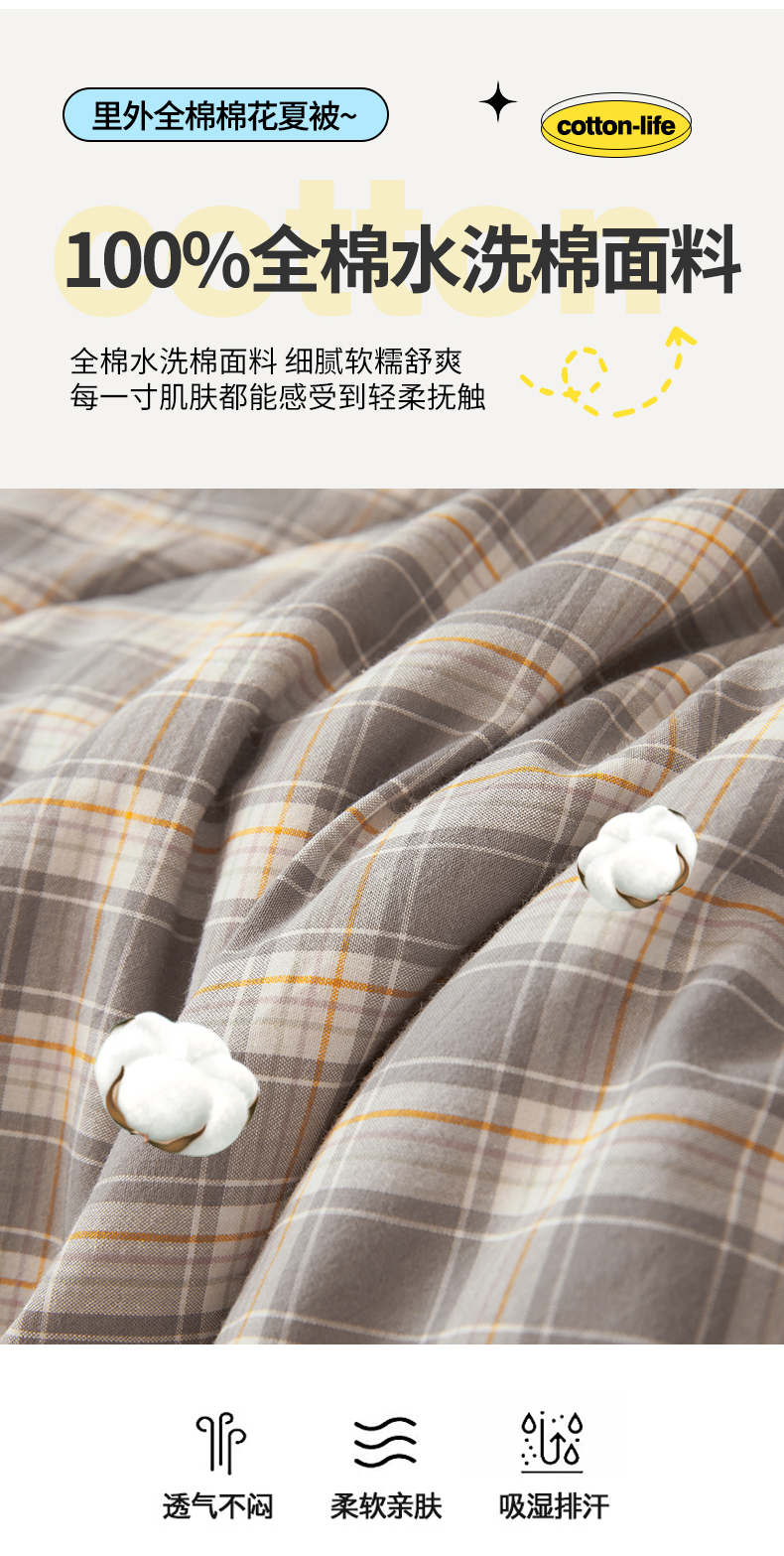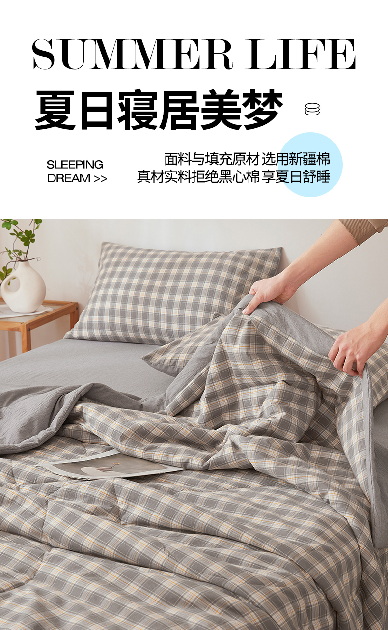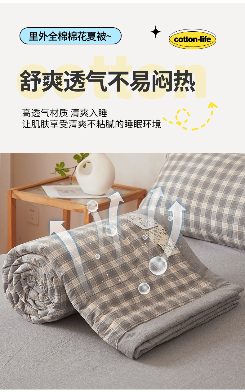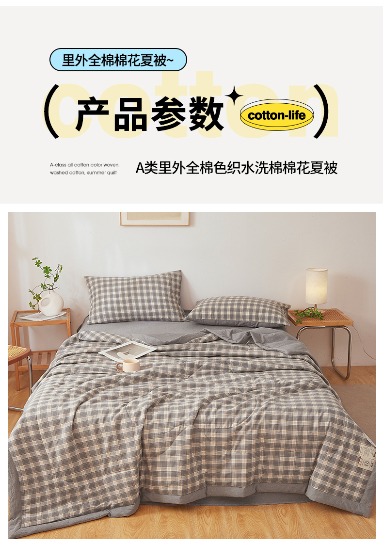商品名称:2026新款A类里外全棉夏凉被100%新疆棉纯棉全棉填充无印格子款空调被全棉夏被 里外全棉-韵灰格