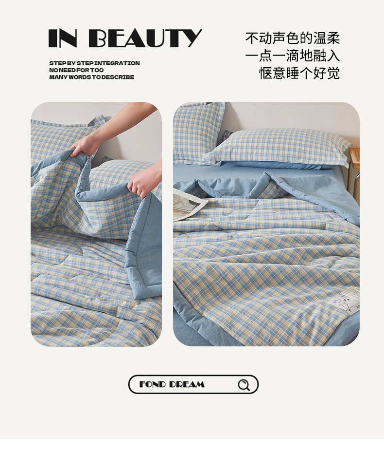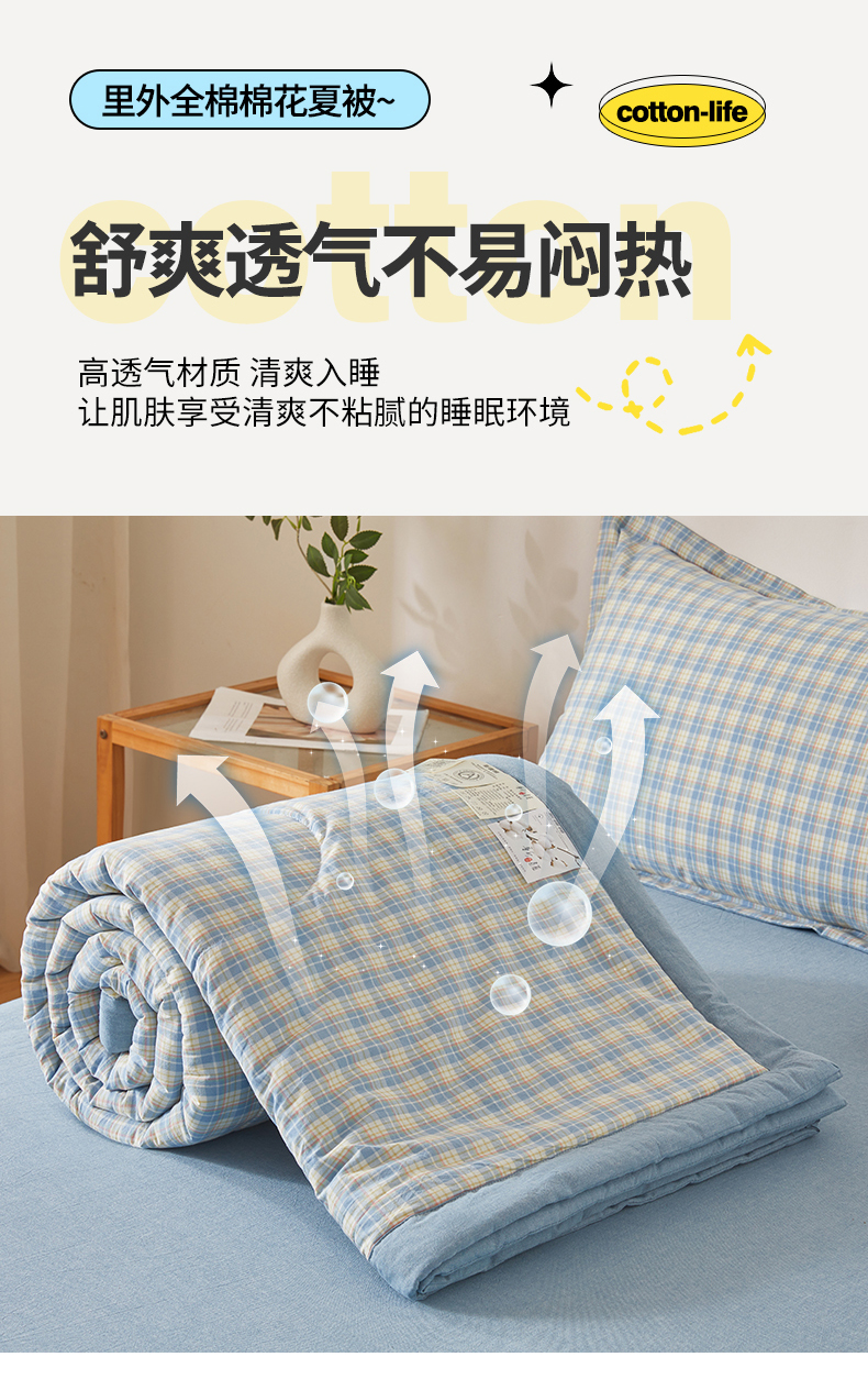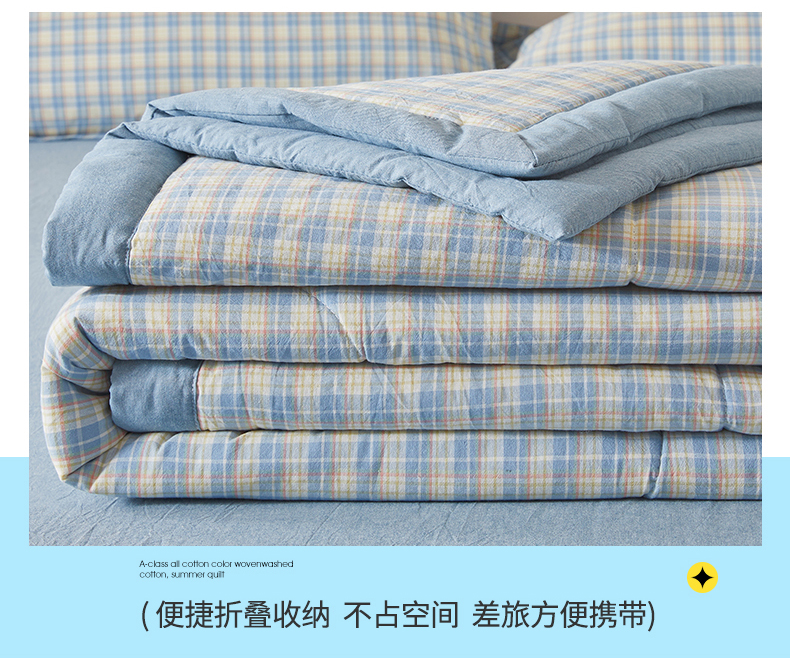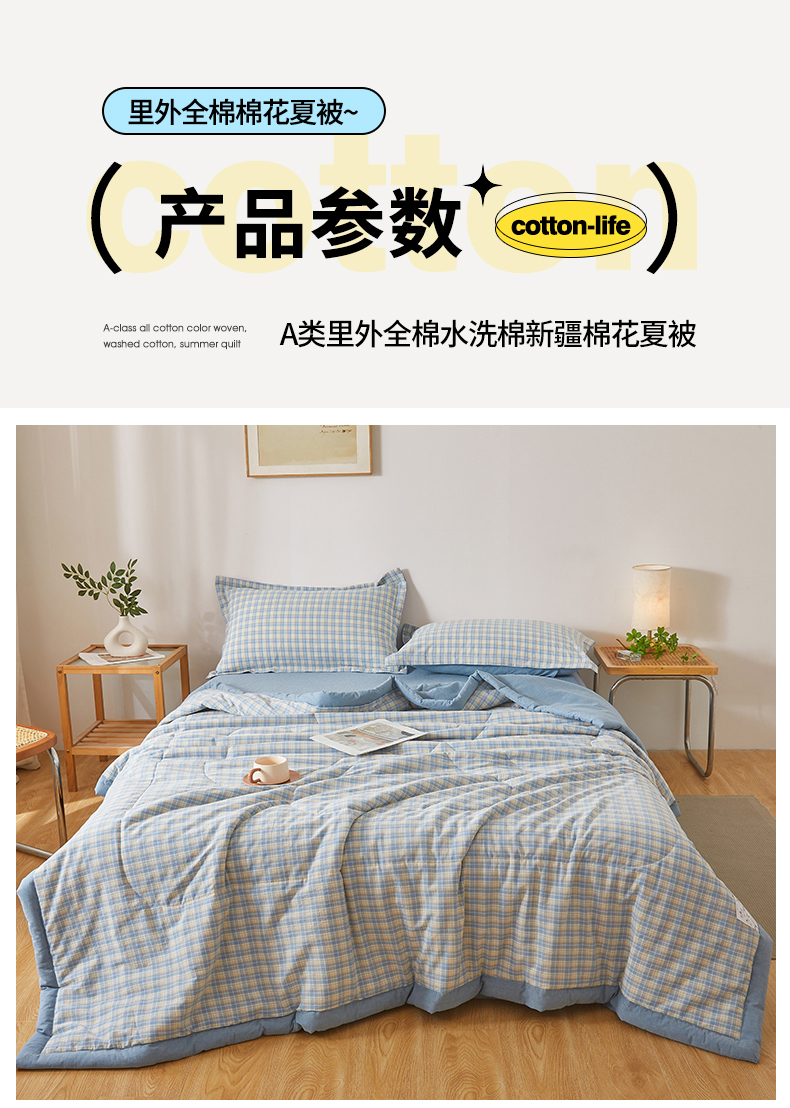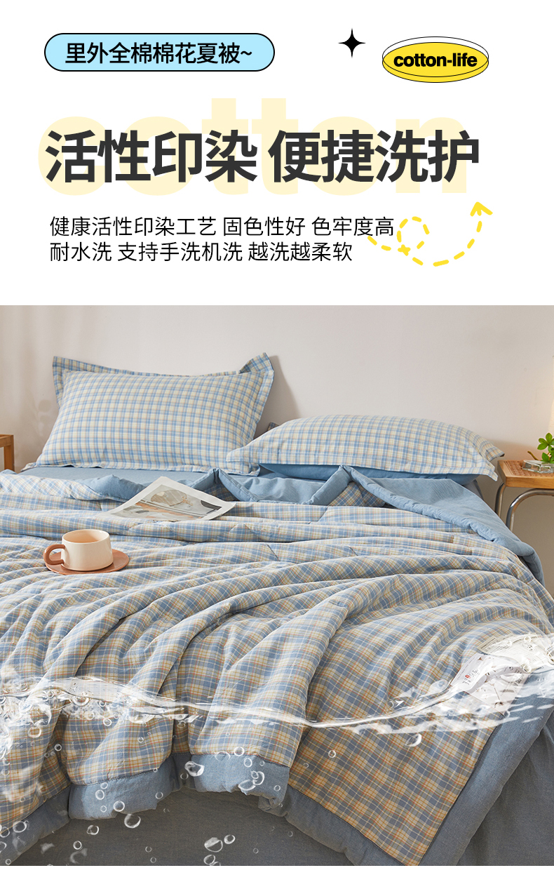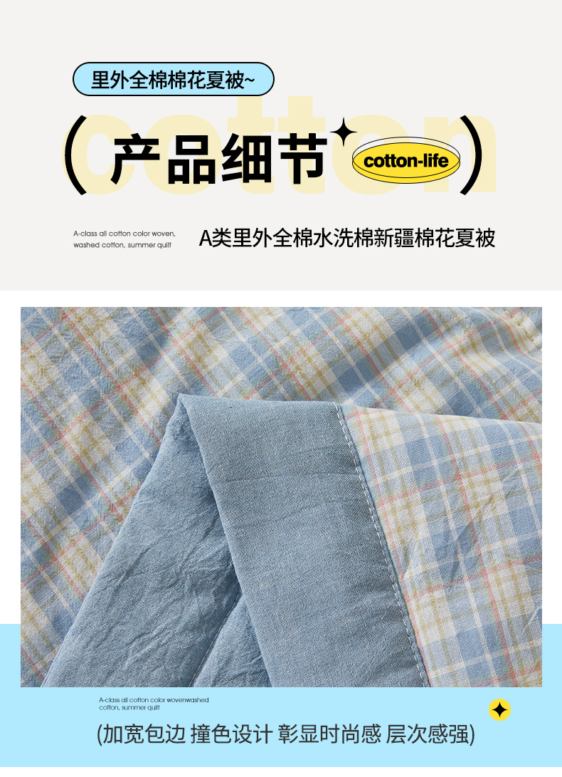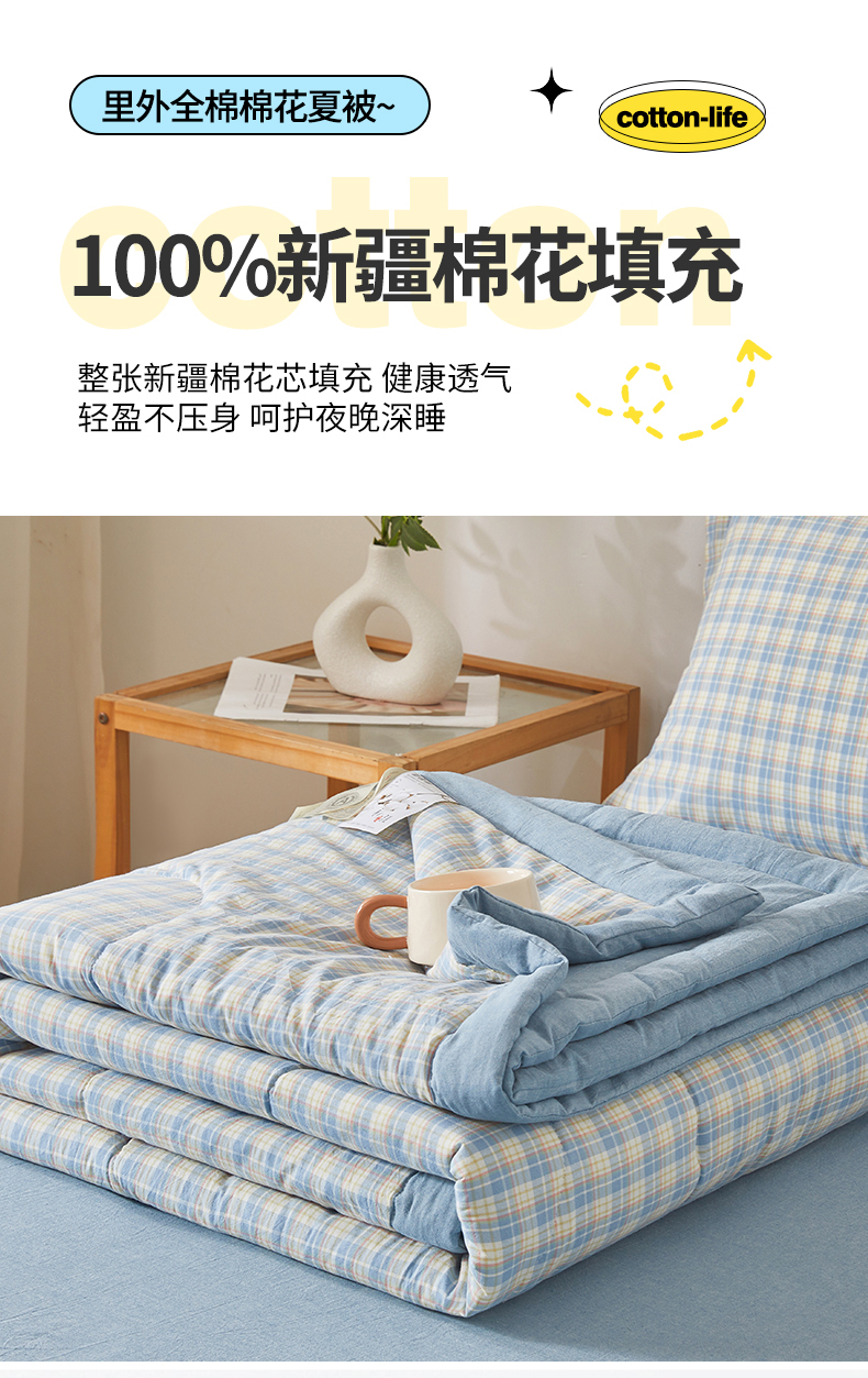 • 91家纺网 家纺一手货源 找家纺 2026新款A类里外全棉夏凉被100%新疆棉纯棉全棉填充无印格子款空调被全棉夏被 里外全棉-麦田 蓝格