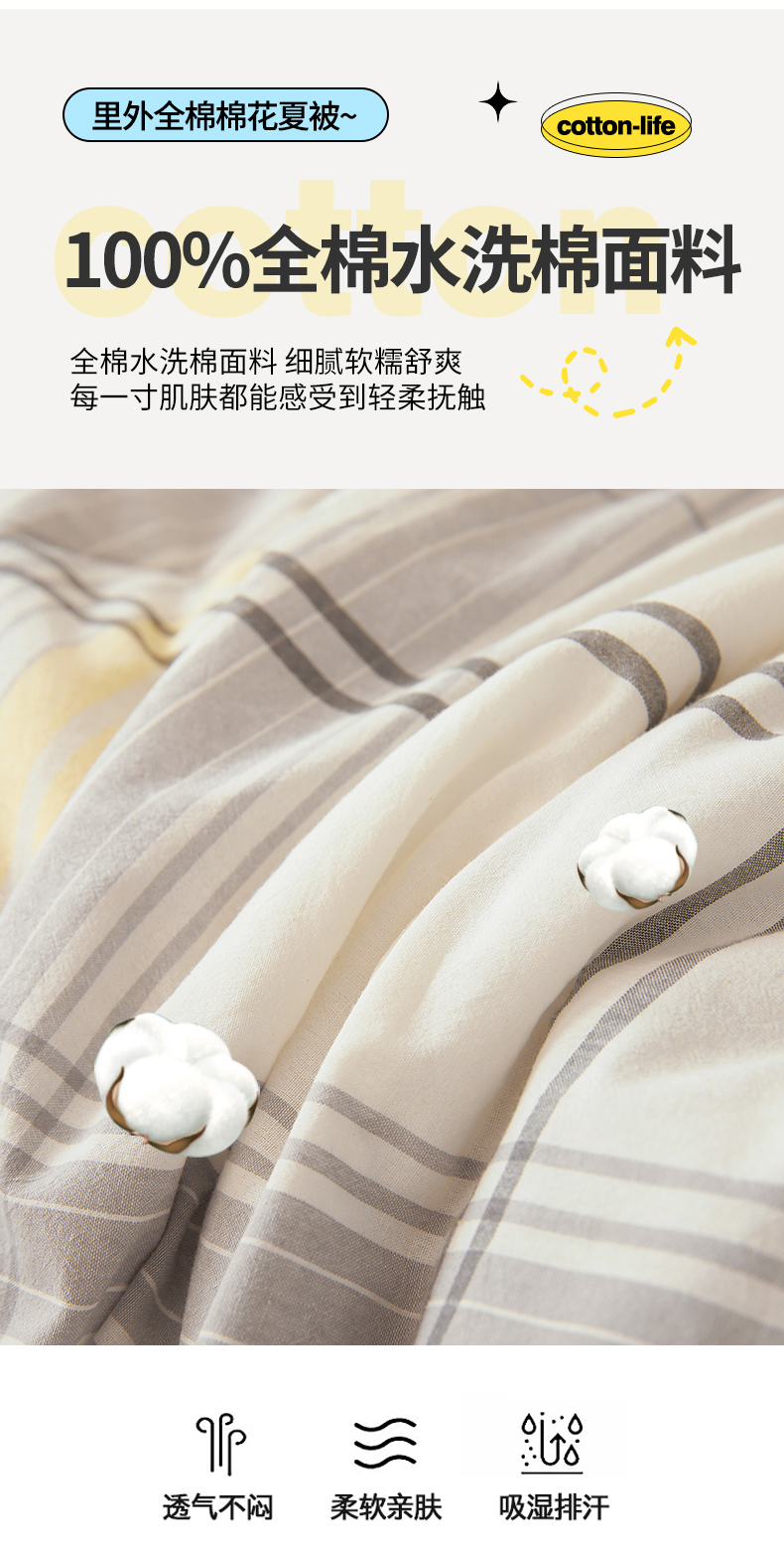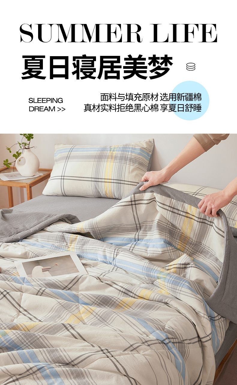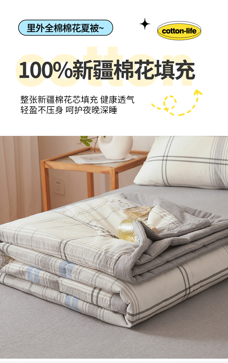 商品名称:2026新款A类里外全棉夏凉被100%新疆棉纯棉全棉填充无印格子款空调被全棉夏被 里外全棉-简灰格