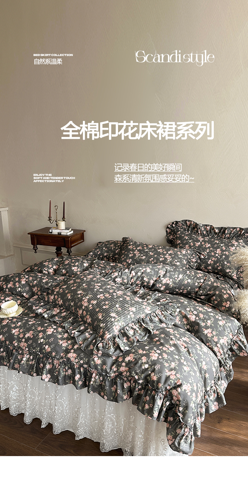 瑞宝 2026新款法式全棉印花床裙四件套 洛可可小姐