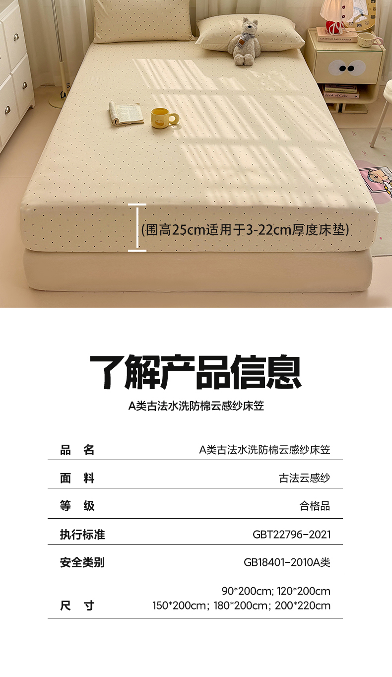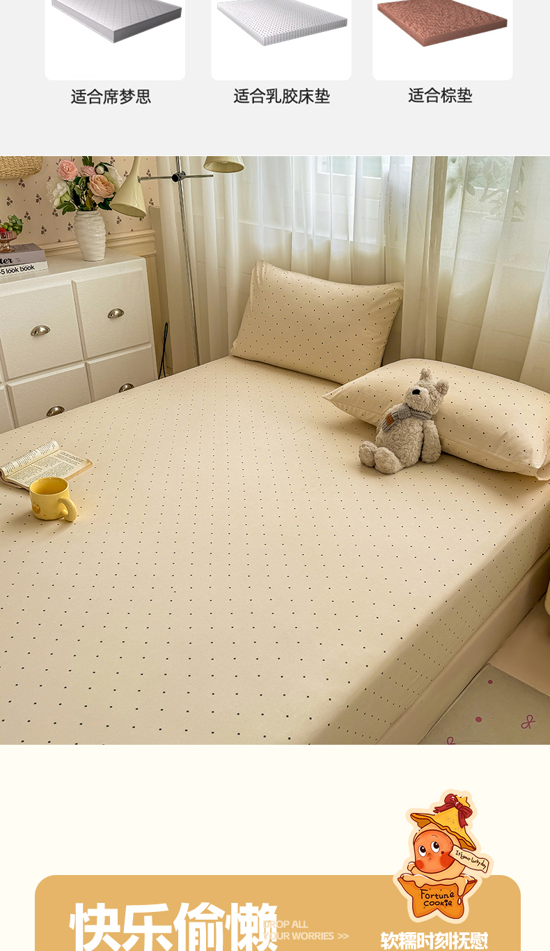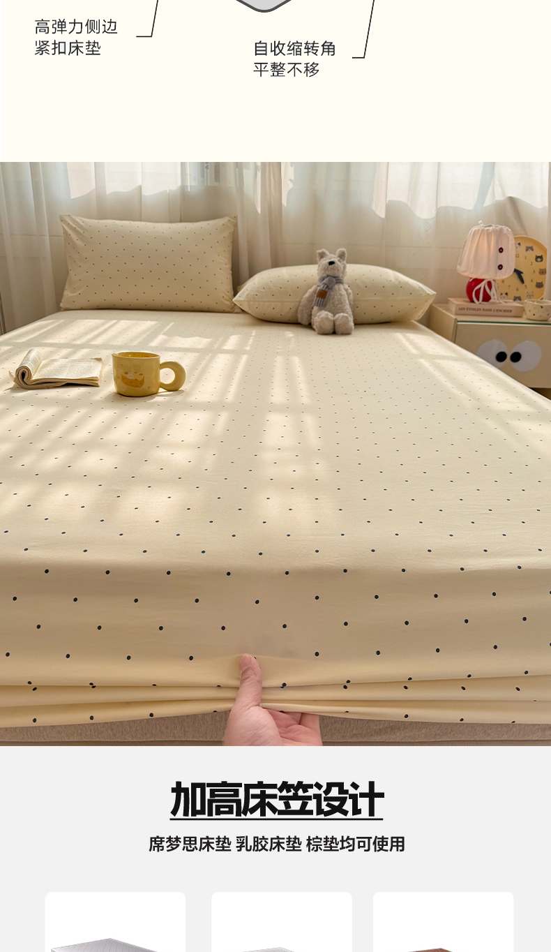 当前位置: 91家纺网 > 商品网购 > 床上用品 > 床笠 > 一比一家纺 2026春夏新款A类仿棉单床笠床罩床笠单件 小波点