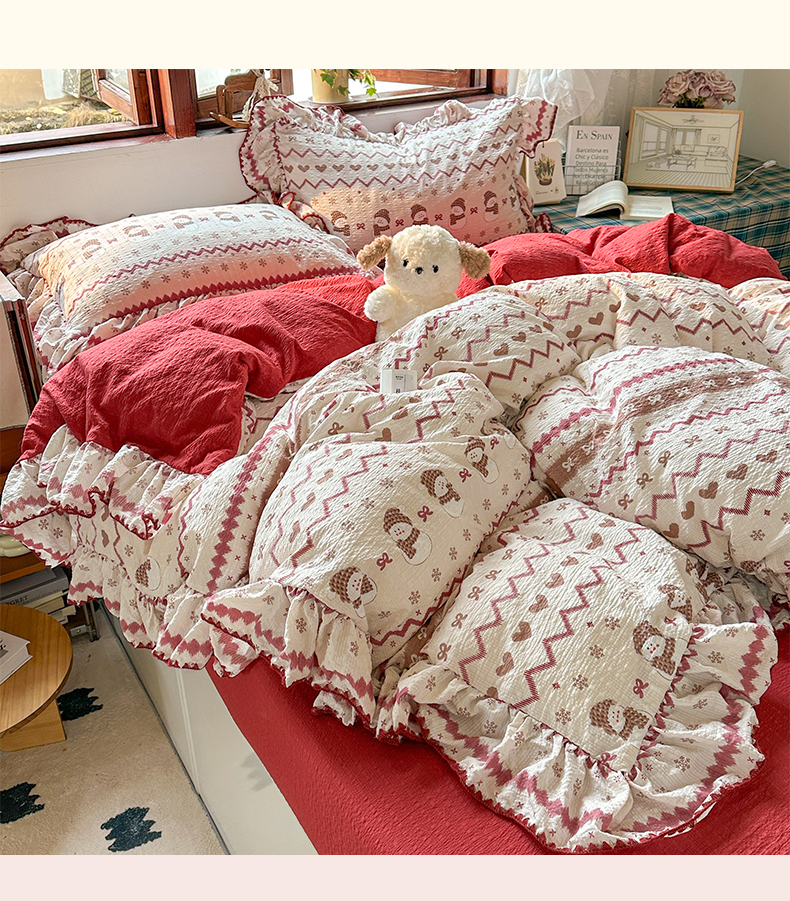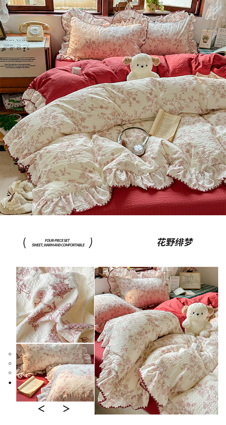 当前位置: 91家纺网 > 商品网购 > 床品套件 > 四件套 > 其它四件套 > 梵克保罗 2026新款泡芙棉三角针被壳绣花边四件套 花染绯梦