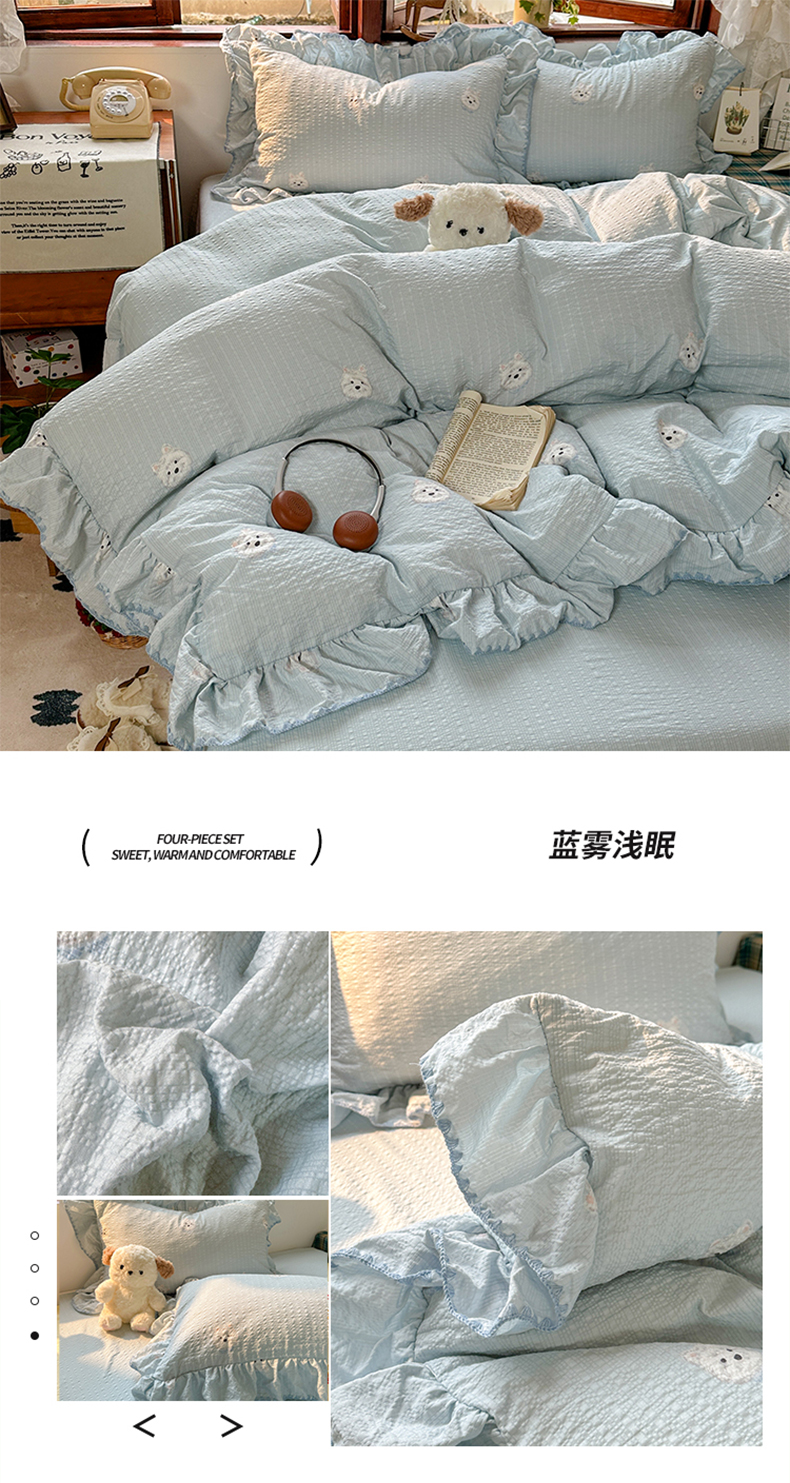 当前位置: 91家纺网 > 商品网购 > 床品套件 > 四件套 > 其它四件套 > 梵克保罗 2026新款泡芙棉三角针被壳绣花边四件套 雪人甜梦