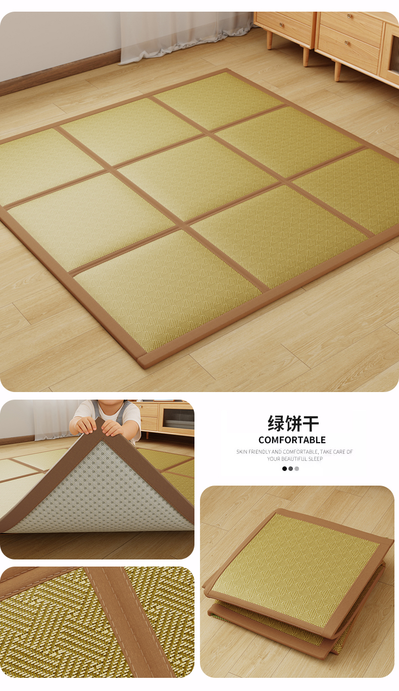 (总)梦卡迪 2026新款A类双面真冰藤凉席学生宿舍寝室夏天席子提花凉感软席,绿色,咖色,灰色