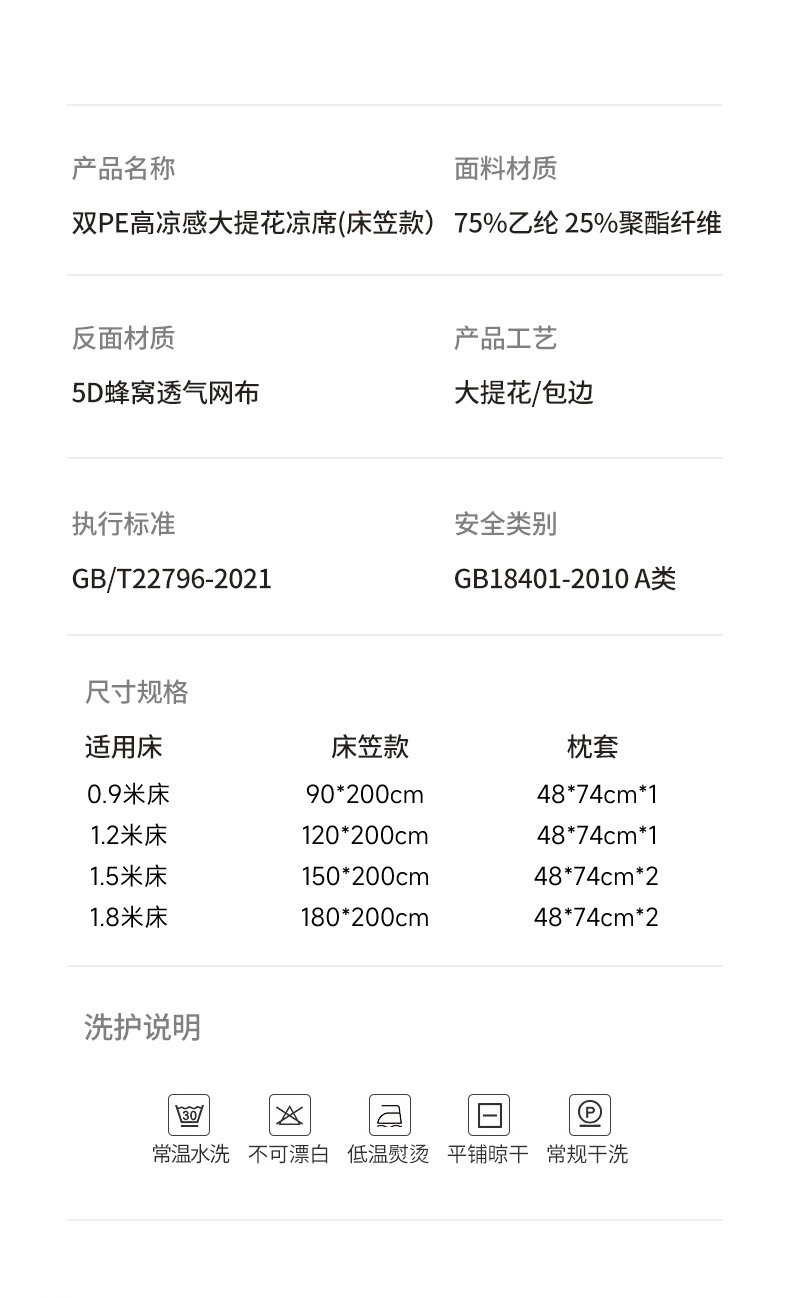 180x200cm凉席+枕套一对