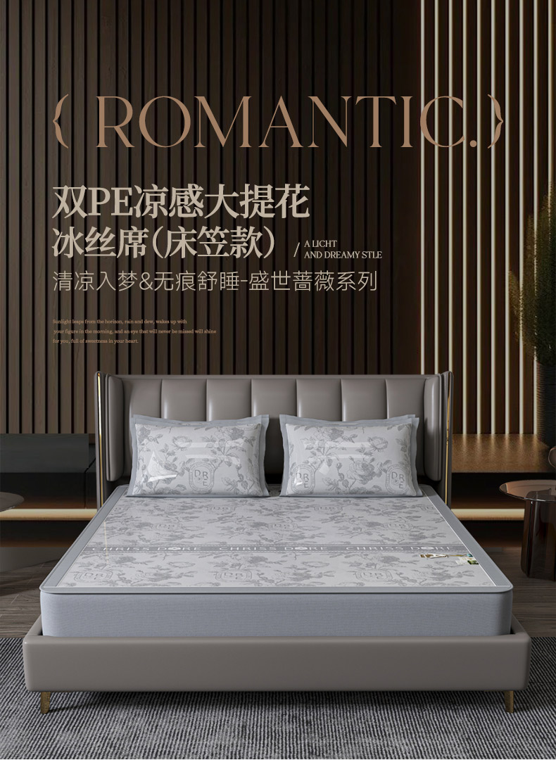 商品名称:小牛席业 2026春夏新款【建模风格】双PE高凉感-盛世蔷薇凉感冰丝席(床笠款) 盛世蔷薇-香槟