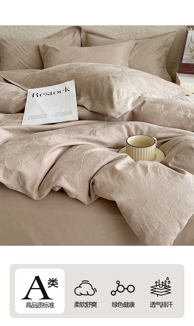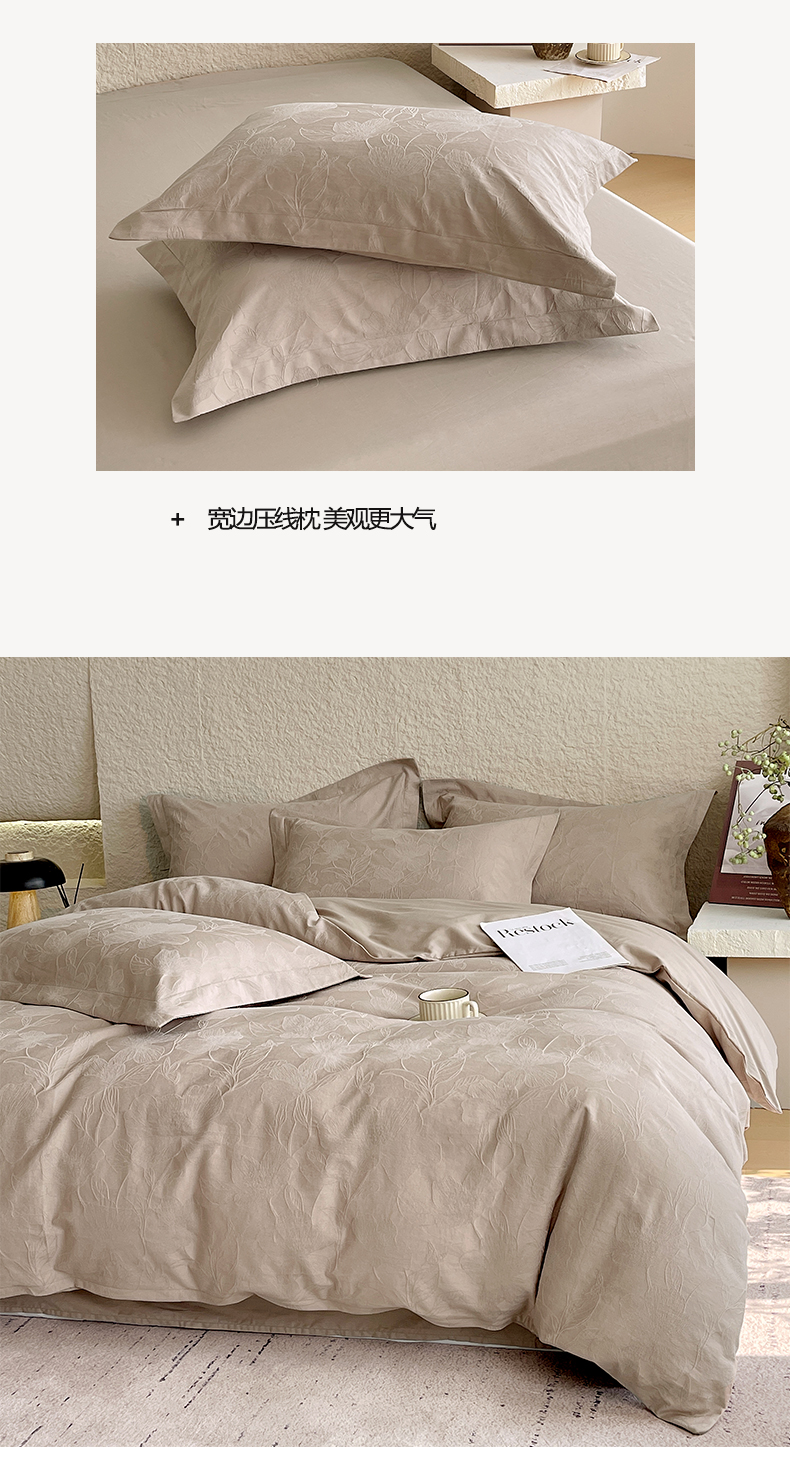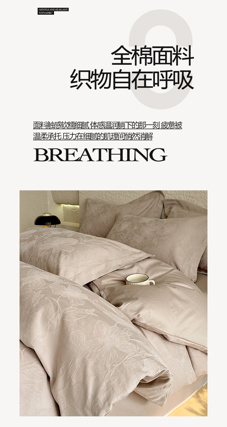 宜家坊 2026新款A类全棉纯棉亮面浮雕提花四件套 花柔玉净-金属灰