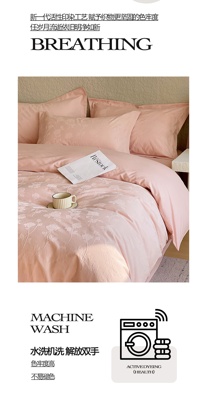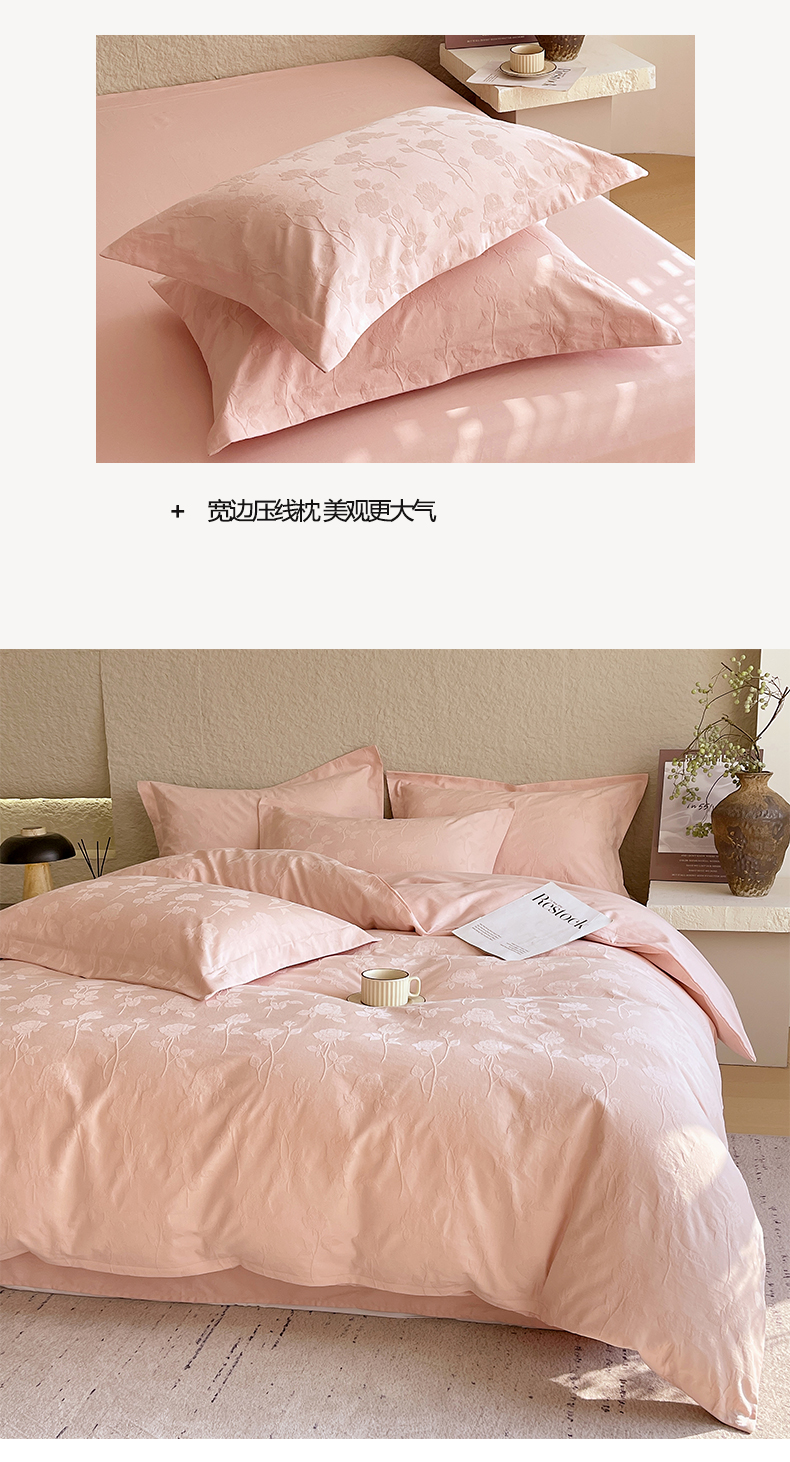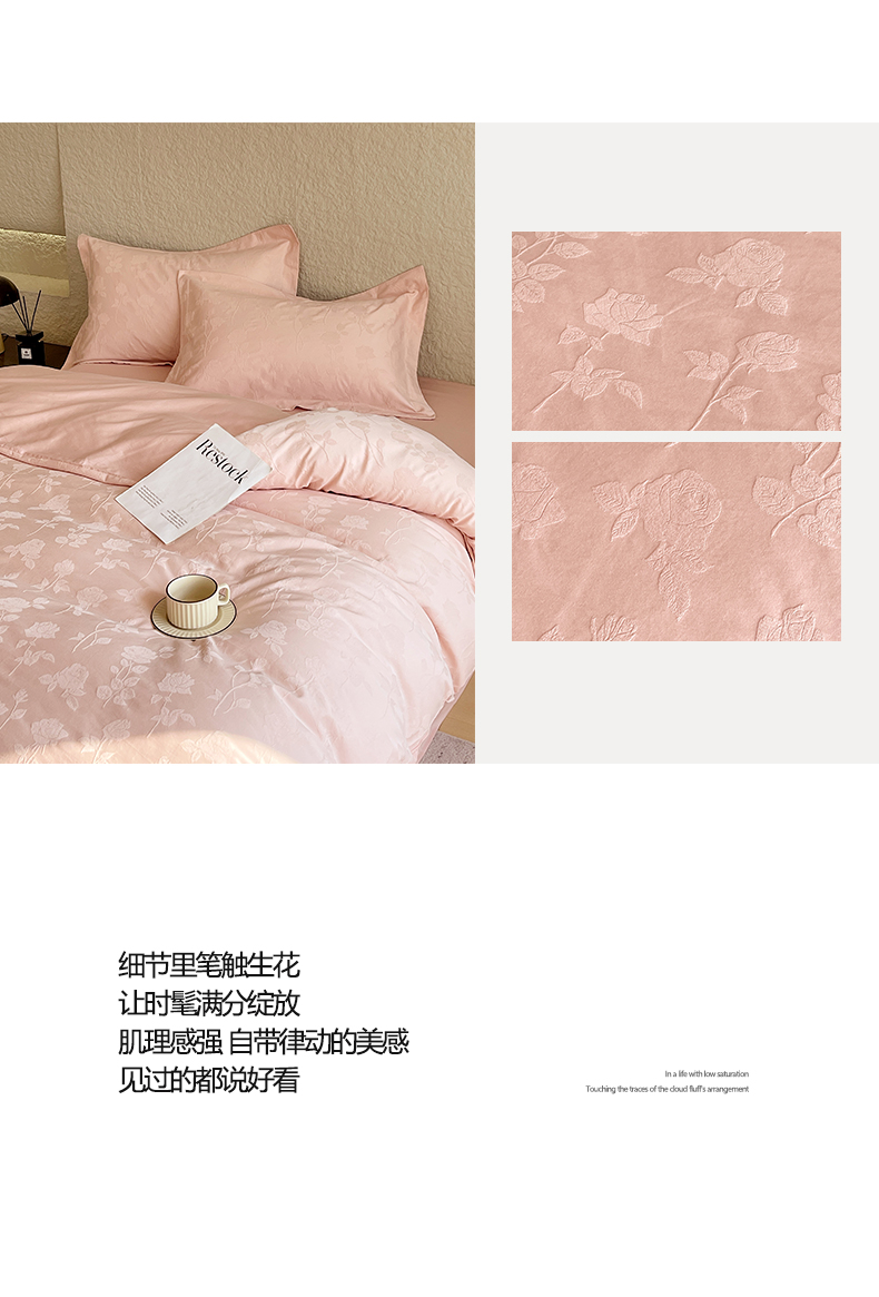 商品名称:宜家坊 2026新款A类全棉纯棉亮面浮雕提花四件套 岁月留声-唯美粉