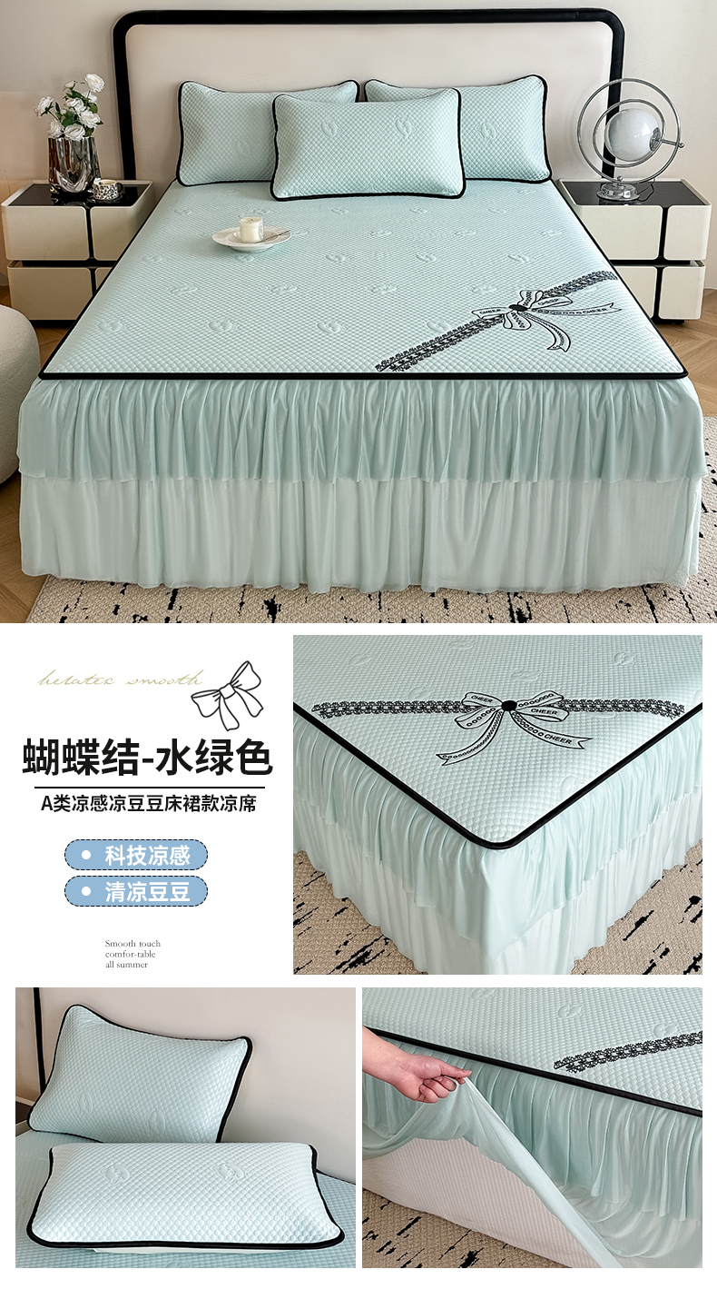 当前位置: 91家纺网 > 商品网购 > 床上用品 > 凉席 > 其他凉席 > 卡罗兰 2026新款豆豆冰丝凉席夏被复合三明治蝴蝶结床裙三件四件套 蝴蝶结-浅灰色