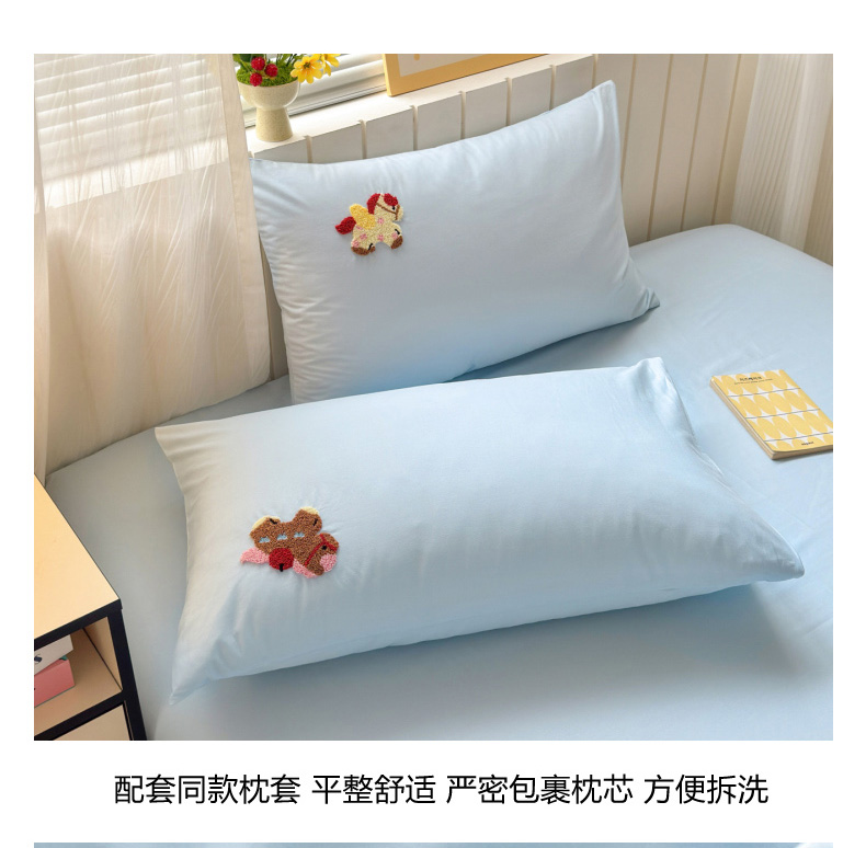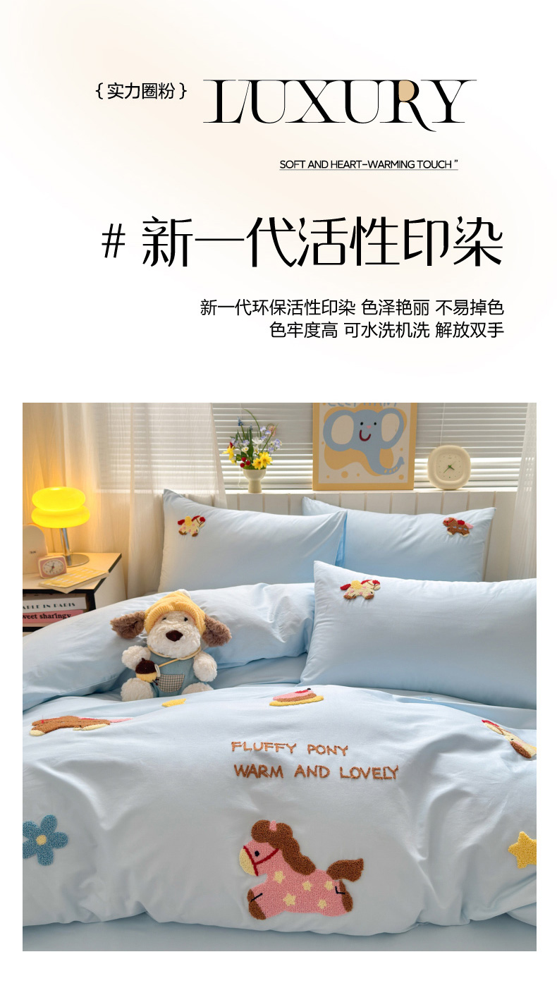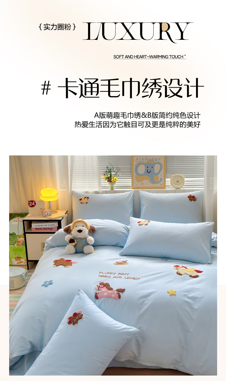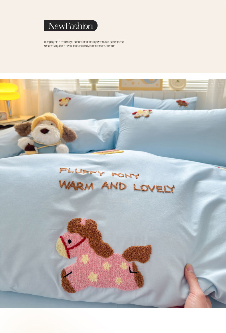 如意朵 2026新款全棉小清新绣花四件套第一批 快乐小马蓝