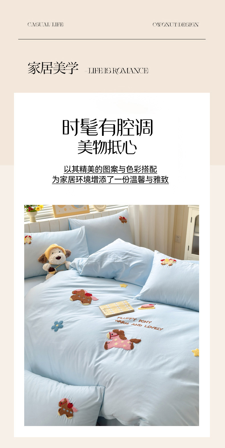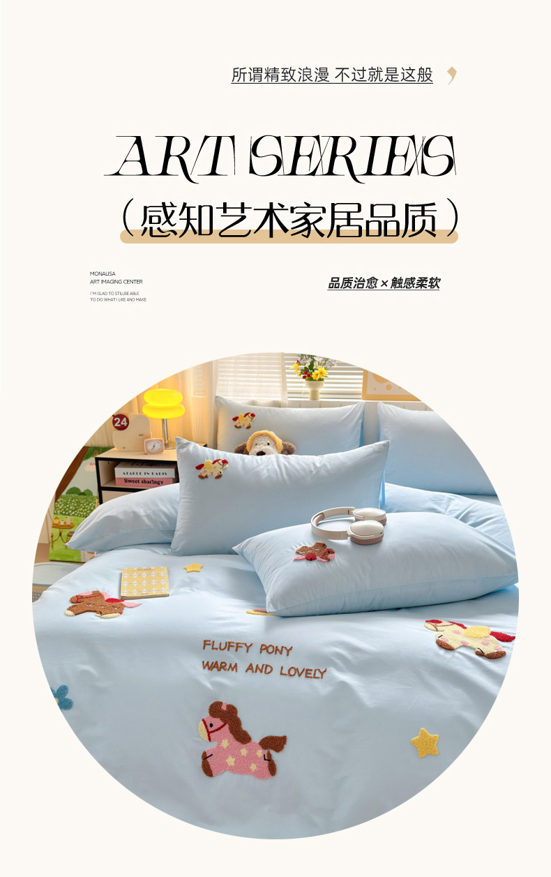 商品名称:如意朵 2026新款全棉小清新绣花四件套第一批 快乐小马蓝