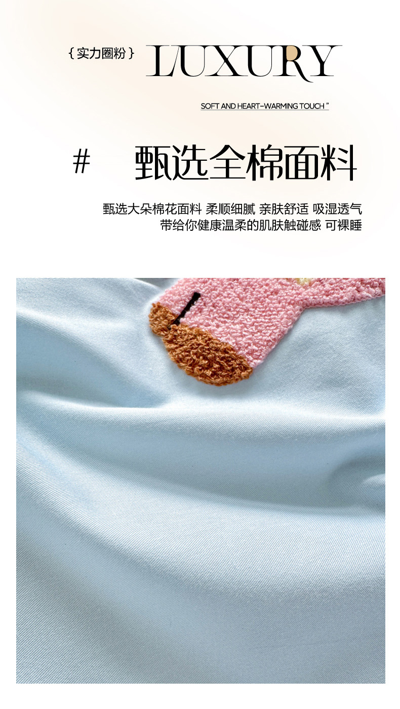 (总)如意朵 2026新款超柔高密全棉小清新绣花四件套(专版花型),喜乐萌狗,番茄萌喵,粉格萌喵,礼物狗狗,摩卡萌喵,甜点萌狗,甜睡小兔,幸运喵喵,招财萌喵