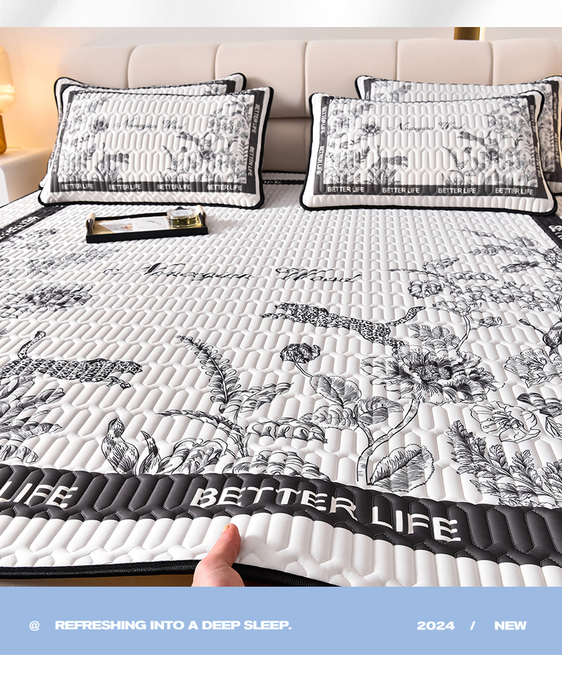 炫拼家纺 2026新款凉感丝大版卡通乳胶凉席三件套 从林豹-灰
