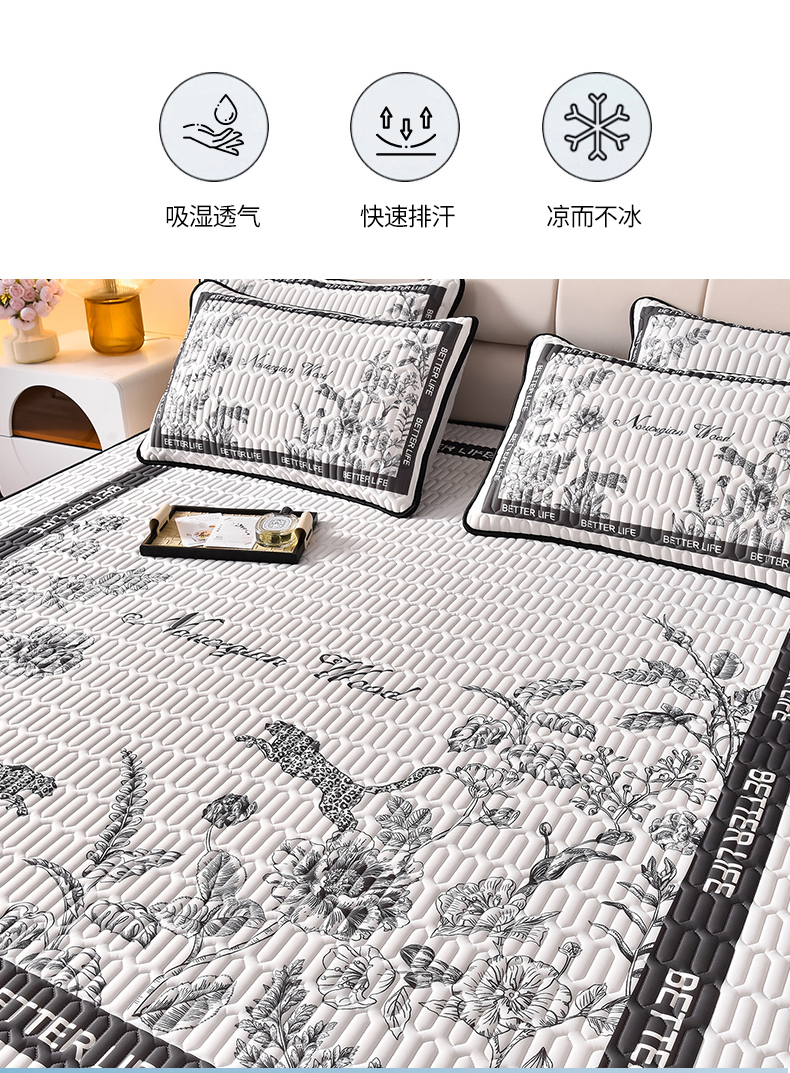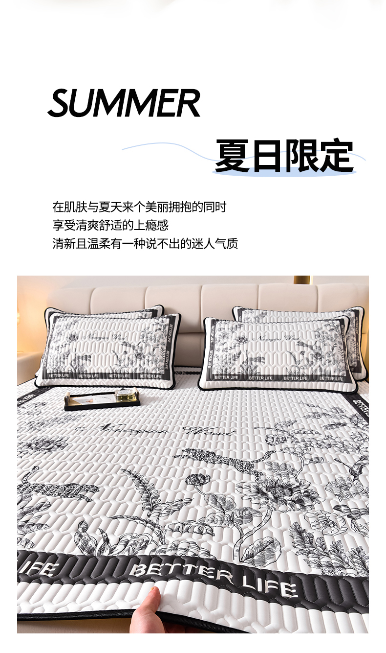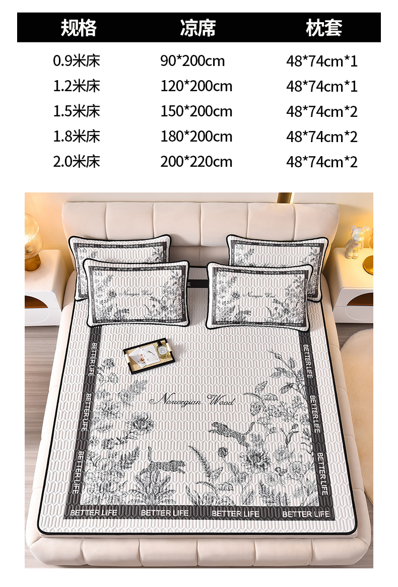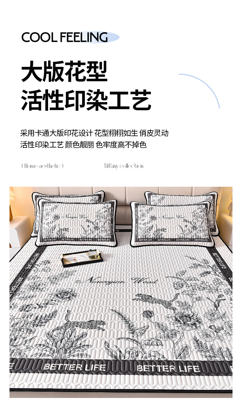 商品名称:炫拼家纺 2026新款凉感丝大版卡通乳胶凉席三件套 从林豹-灰