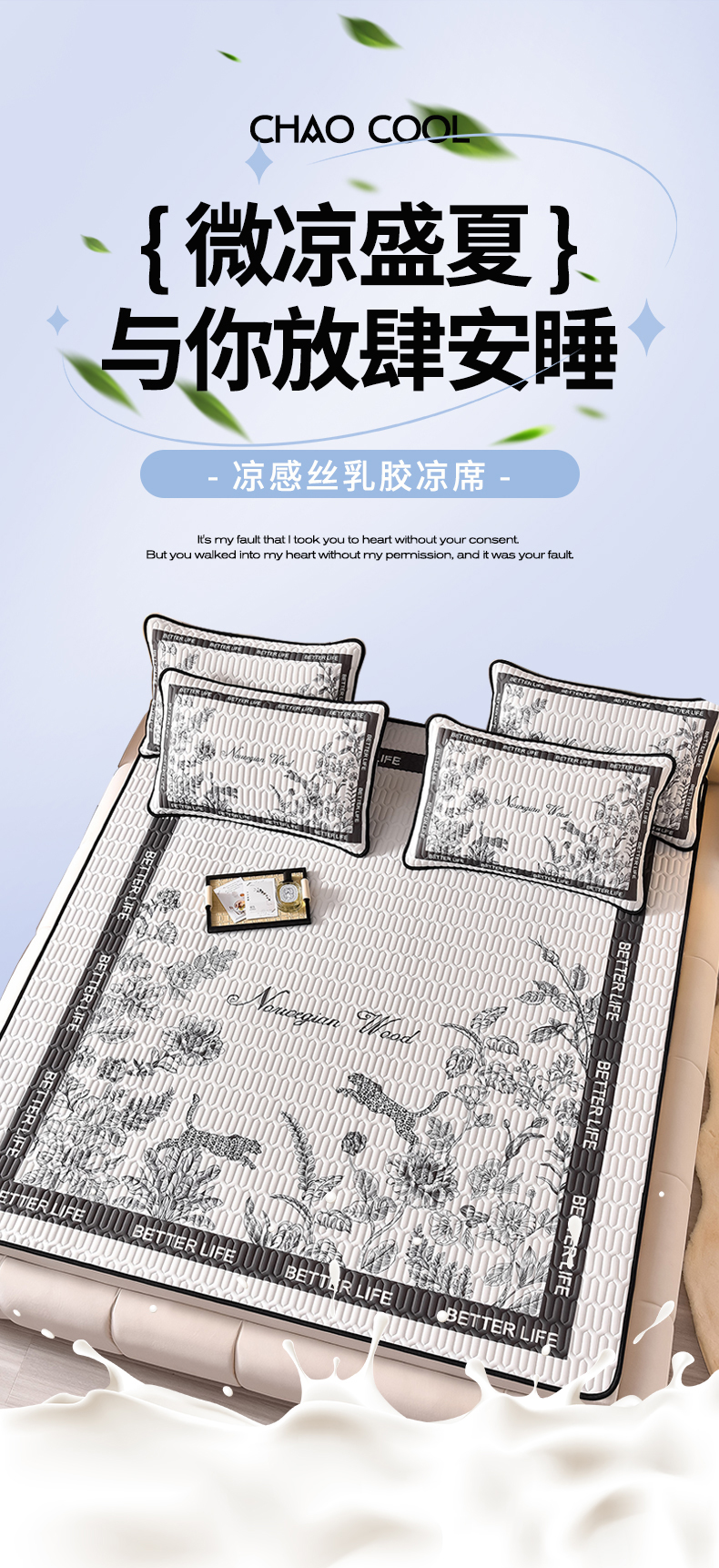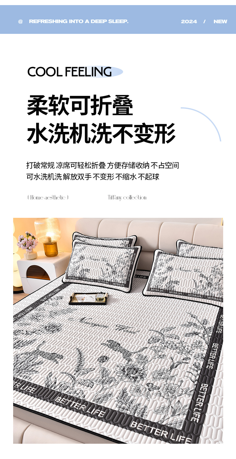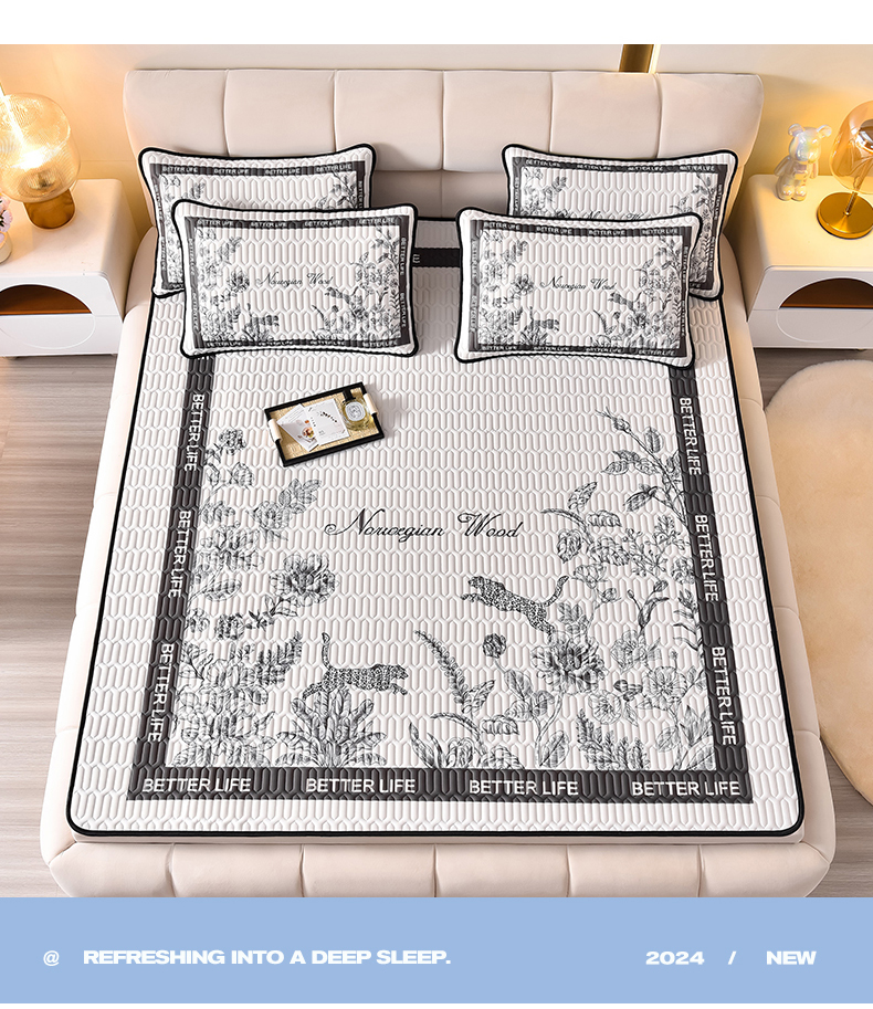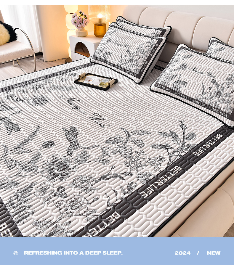 商品名称:炫拼家纺 2026新款凉感丝大版卡通乳胶凉席三件套 从林豹-灰