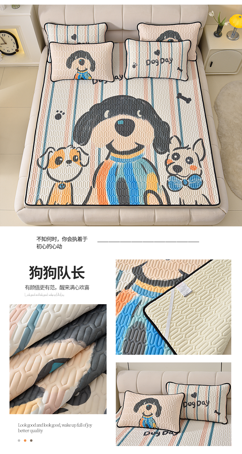 (总)炫拼家纺 2026新款凉感丝大版卡通乳胶凉席三件套,狗狗队长,哈尼小兔,爱财爱己,彩色饼干,彩色心情,草莓园小熊,抽象兔,从林豹-灰,大眼鸭,狗狗比比,哈尼小狗,哈尼熊猫,海浪鲸鱼,好朋友,好柿鸭,欢乐狗,卡皮小爷,龙宝,美拉德熊,美食恐龙-灰,梦幻蝶,恰恰狗,小熊猫,休闲企鹅,一家三口,宇航员,指腚发财