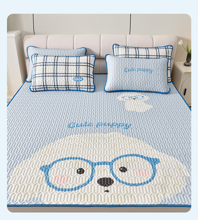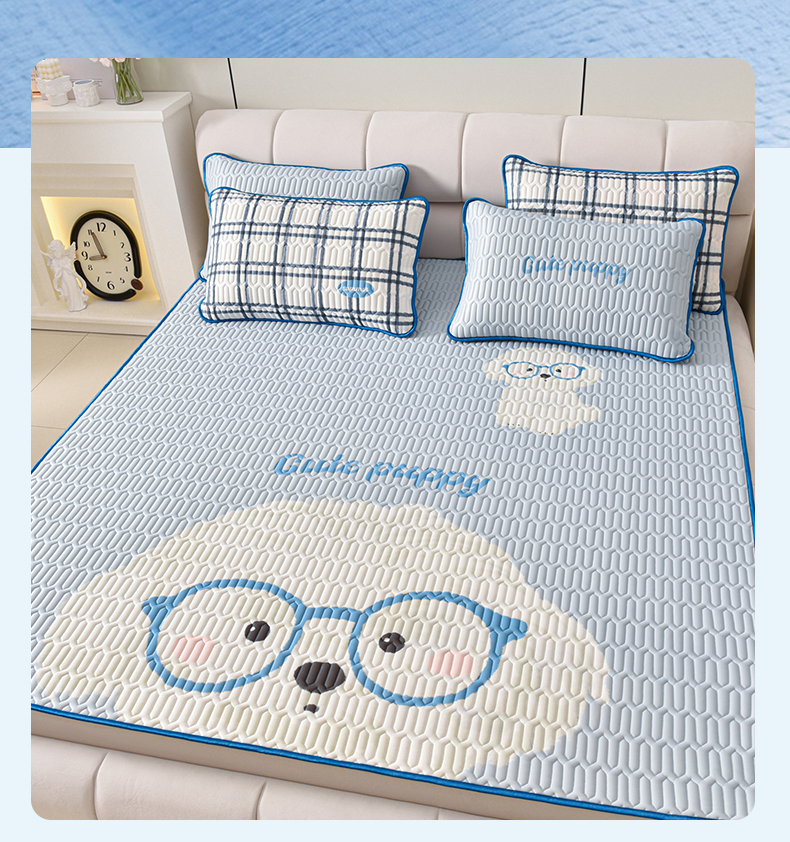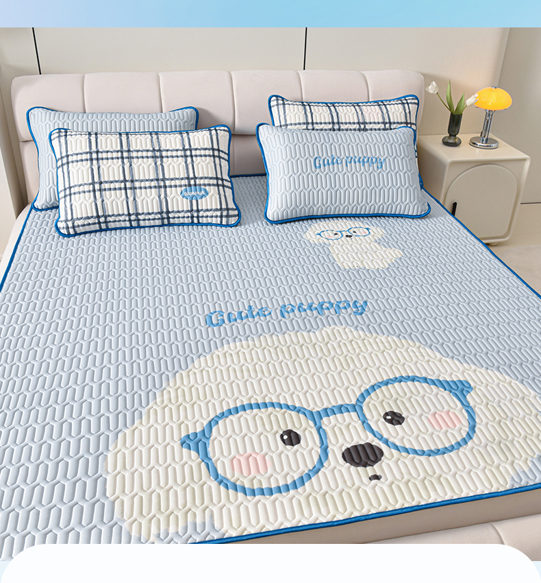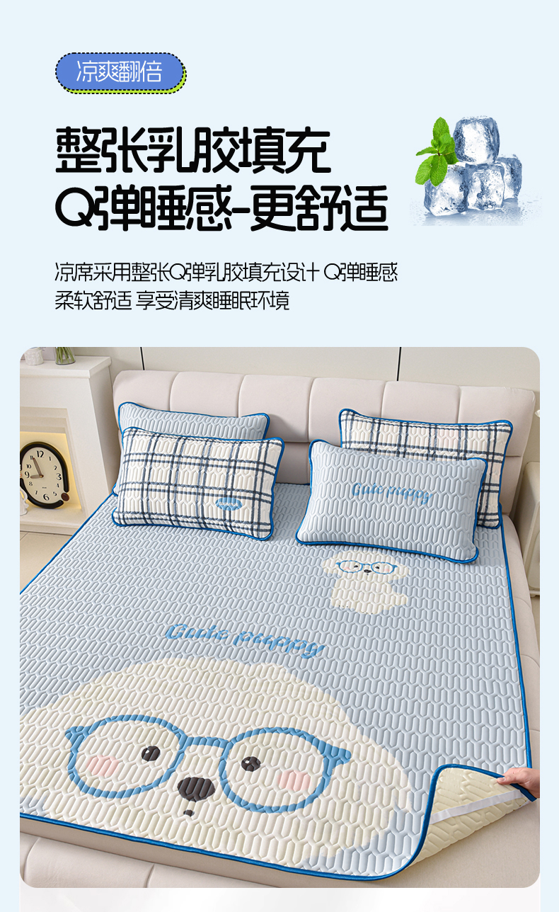 炫拼家纺 2026新款凉感丝大版卡通乳胶凉席三件套 哈尼小狗
