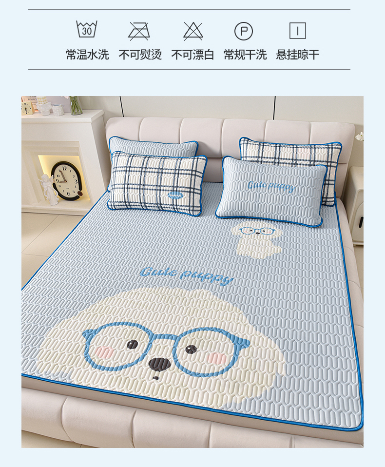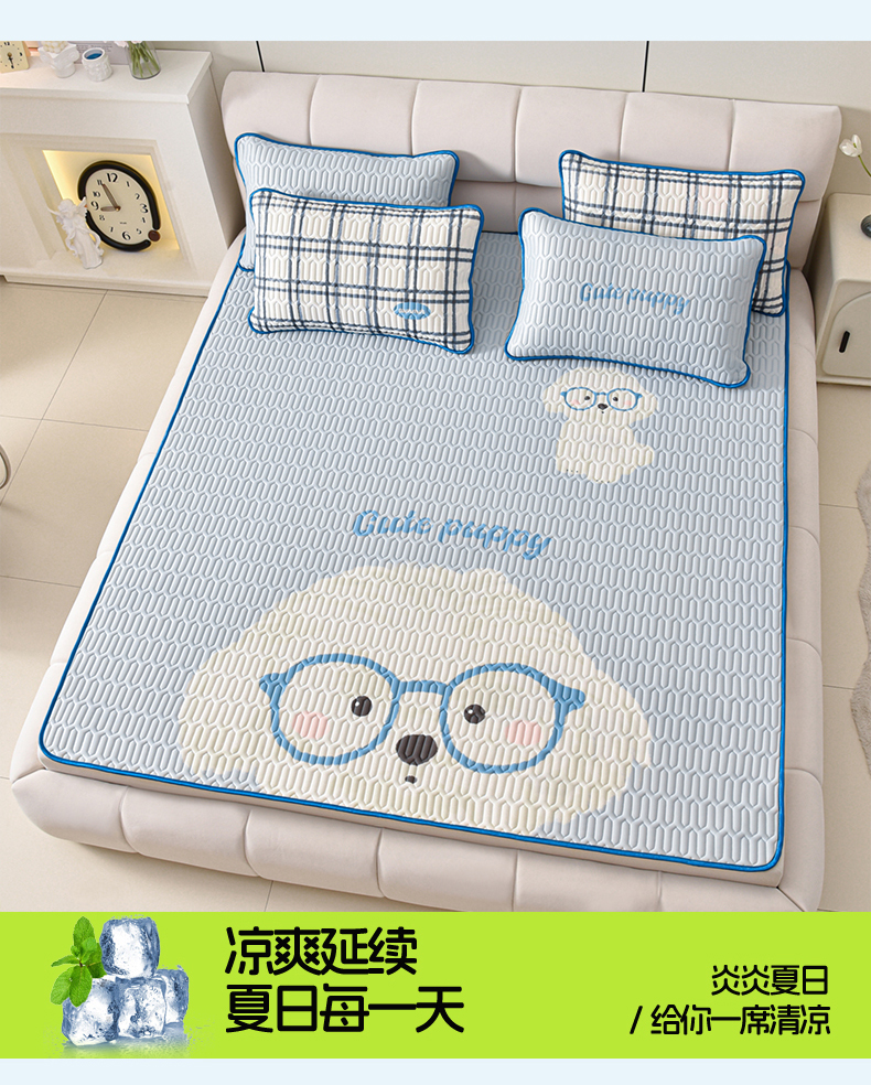 商品名称:炫拼家纺 2026新款凉感丝大版卡通乳胶凉席三件套 哈尼小狗