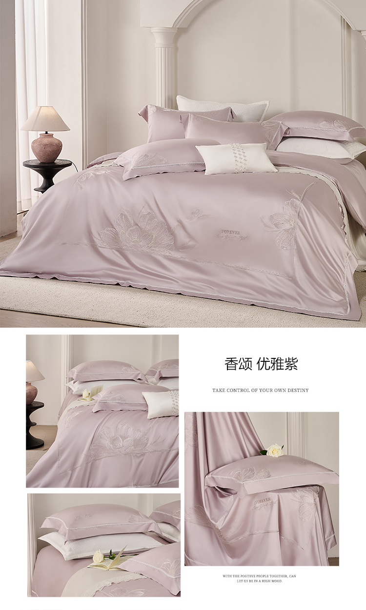 诗黛尔家纺 2026春夏云朵棉刺绣四件套 香颂系列 香颂-优雅紫
