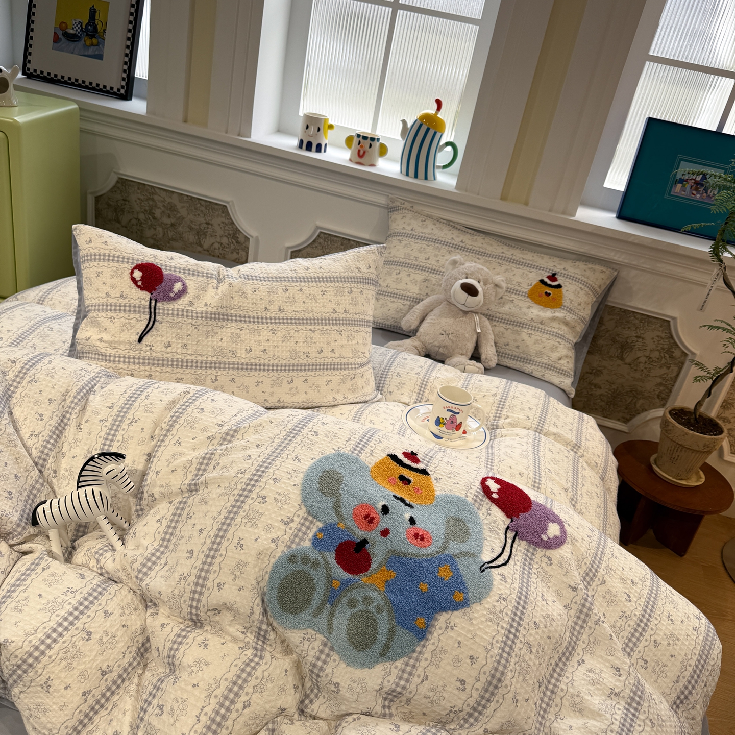 当前位置: 91家纺网 > 商品网购 > 床品套件 > 四件套 > 毛巾绣四件套 > 珺柔家纺 2026新款卡通华夫格毛巾绣四件套 园丁小狗
