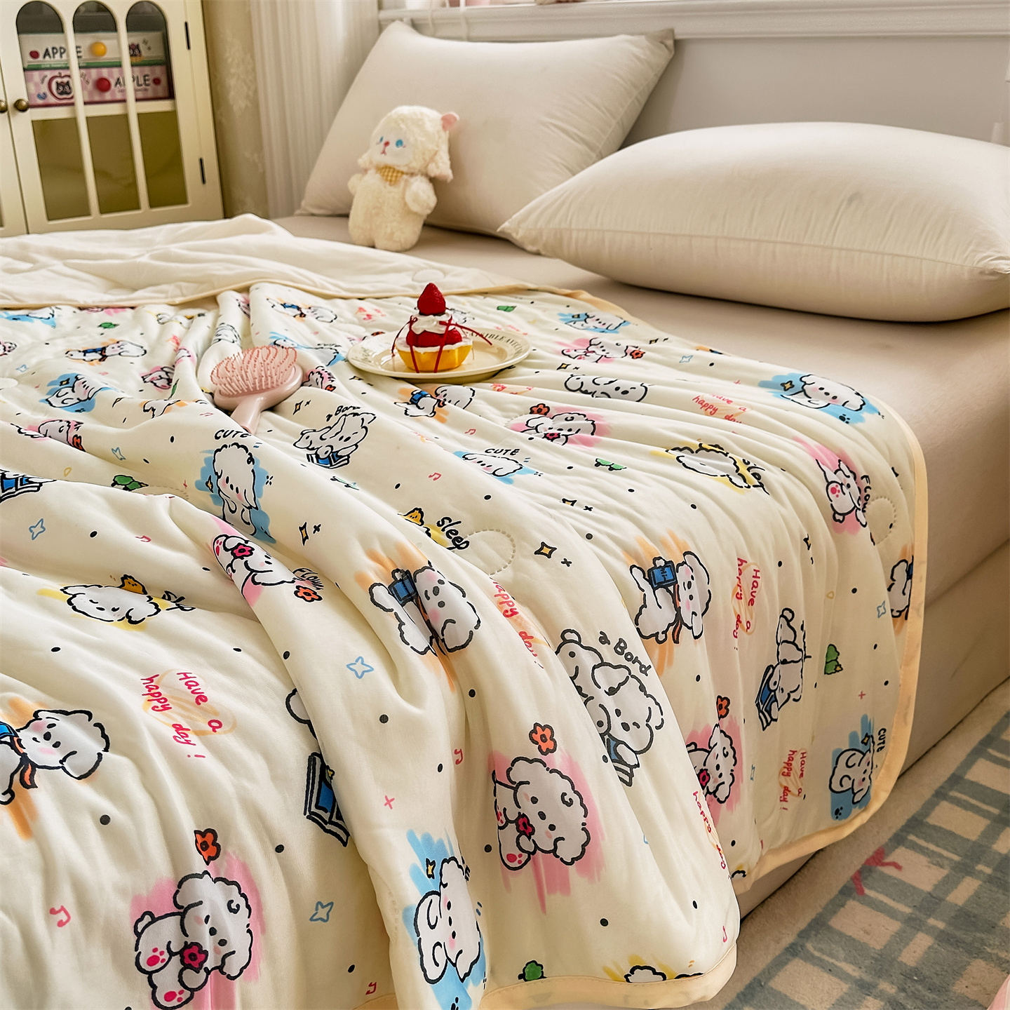 商品名称:欣宜家纺 2026新款母婴级卡通冰淇淋夏被夏凉空调冰丝薄款被芯可机洗凉感丝冰皮被子 被子被芯 乖乖狗
