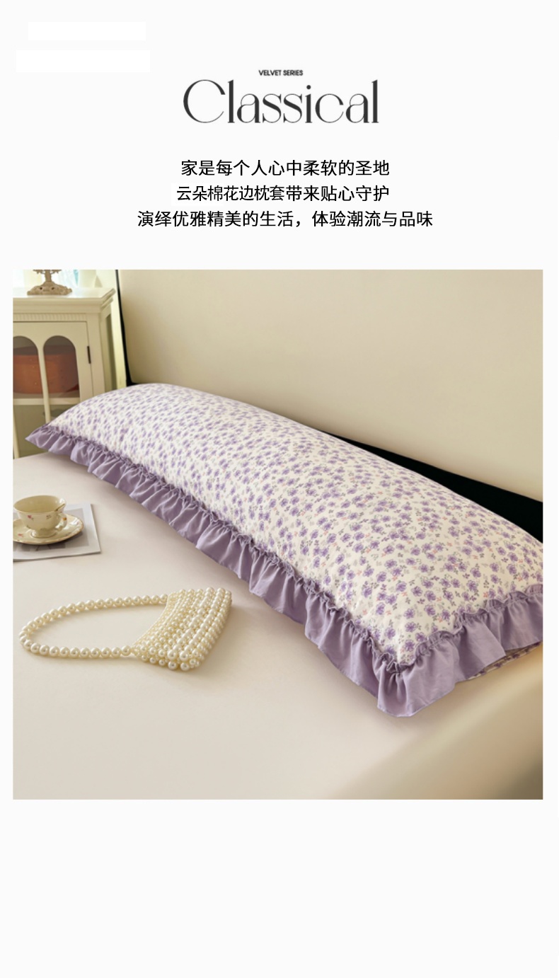 当前位置: 91家纺网 > 商品网购 > 床上用品 > 枕套 > 梦舒羽 2026新款A类云朵棉法式压花边枕套加长双人情侣1.8米枕芯内胆套1.5m枕头套 紫间花语(法式压花边)