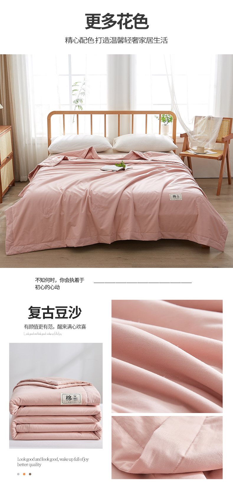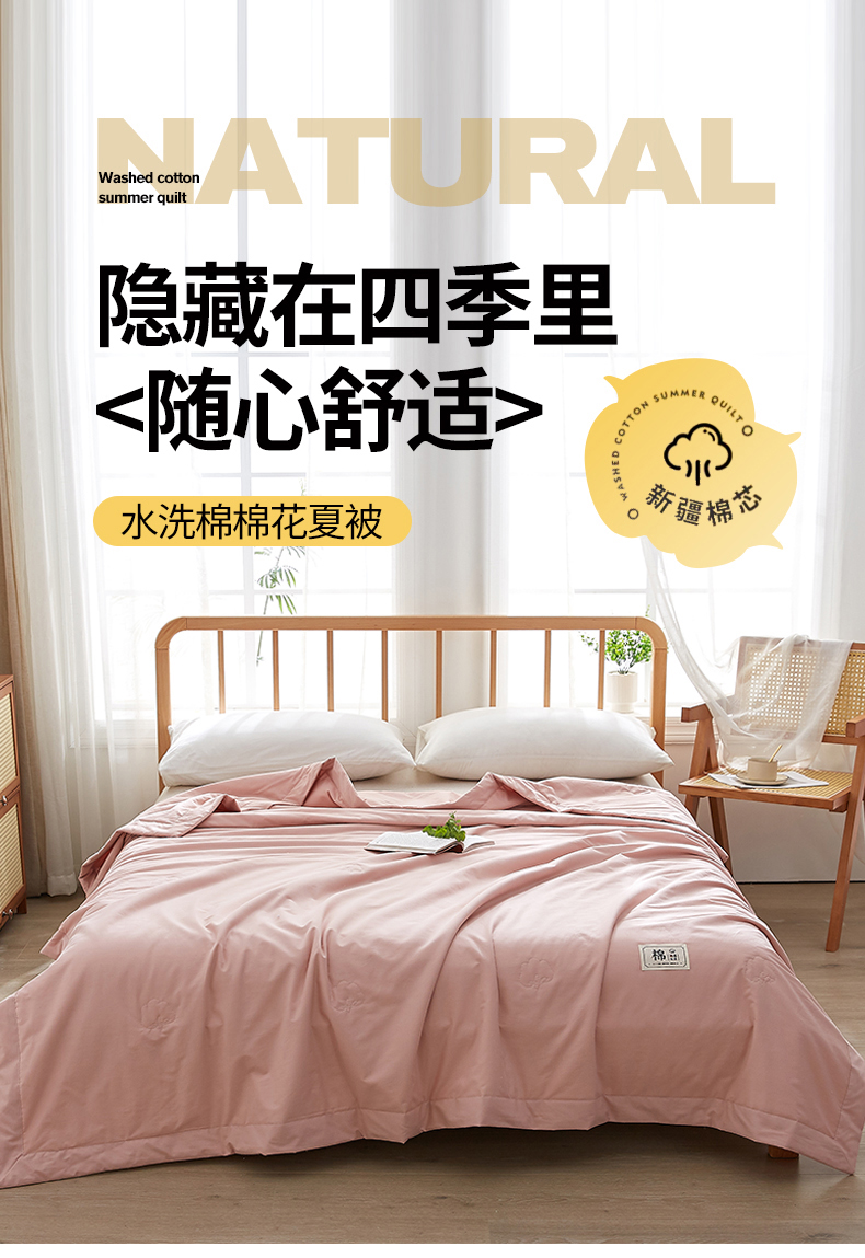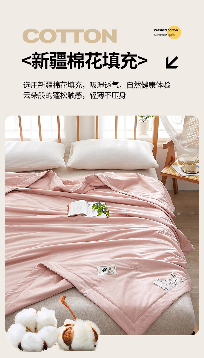 商品名称:猎鹿人家纺 2026新款纯色全棉水洗棉棉花夏被空调被 莲藕粉
