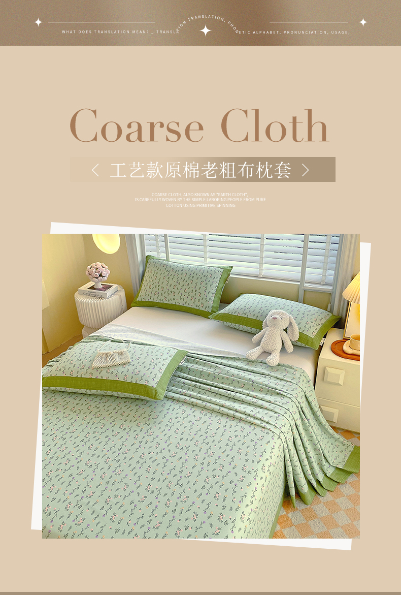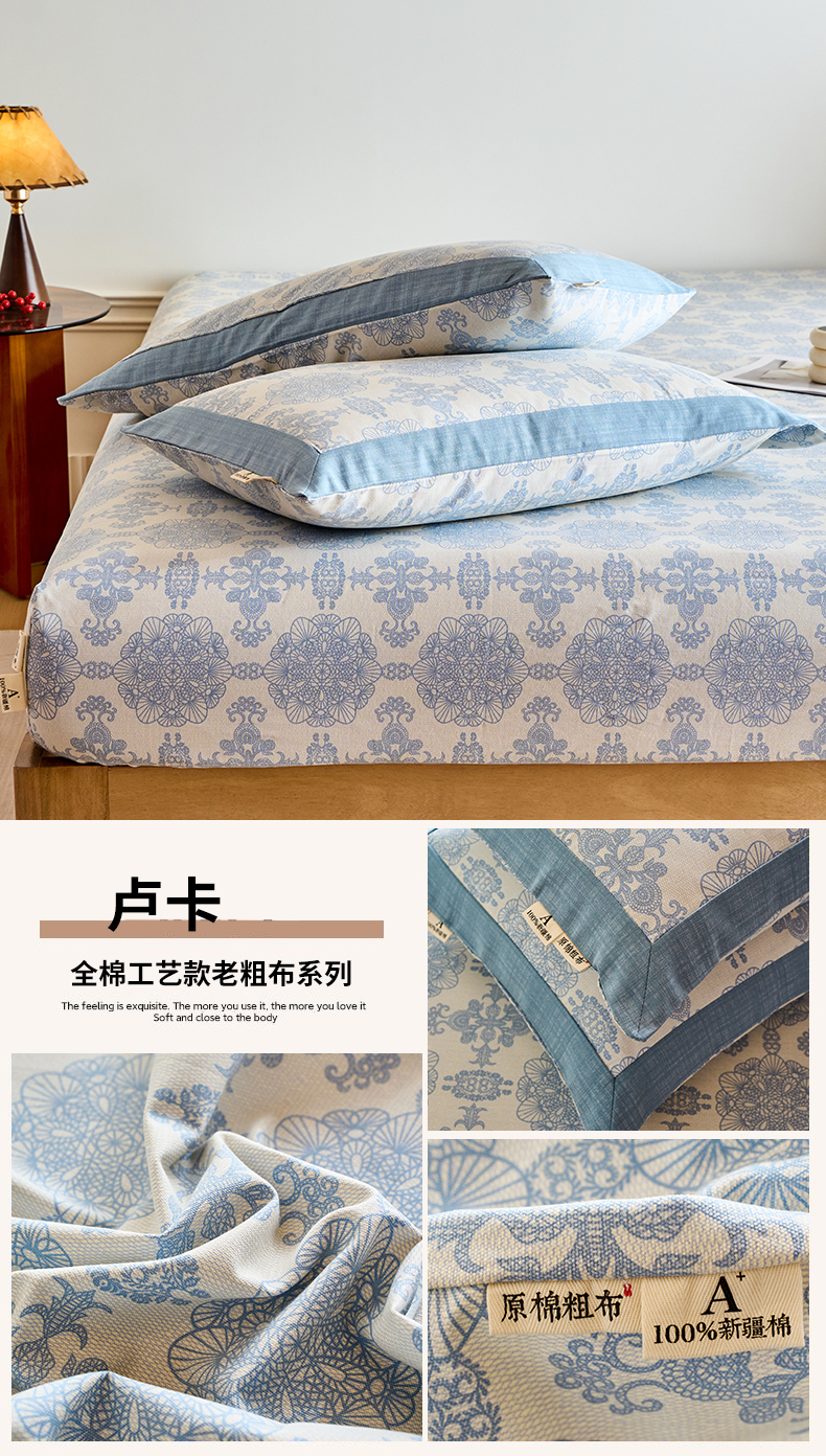 商品名称:春皖家纺 2026新款全棉老粗布工艺款单枕套枕套单件 春满园