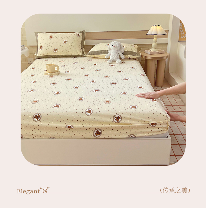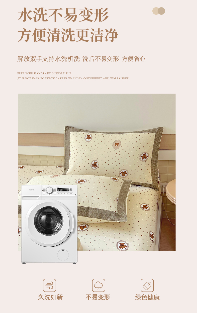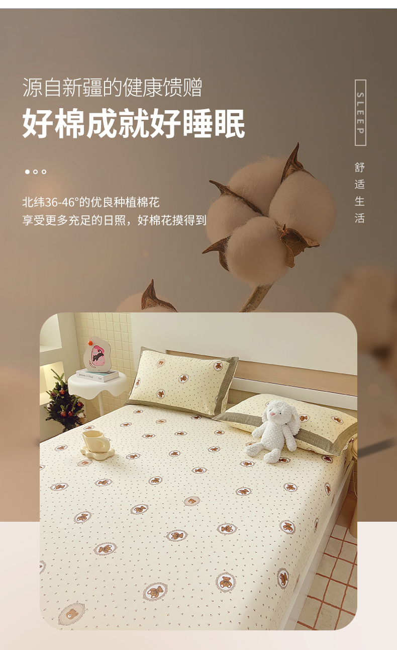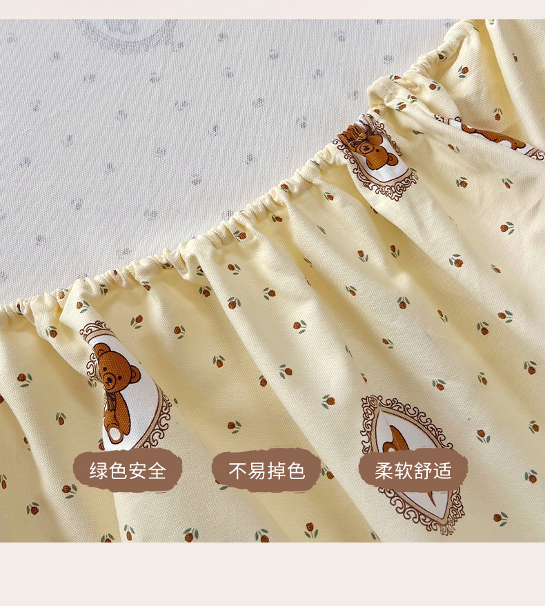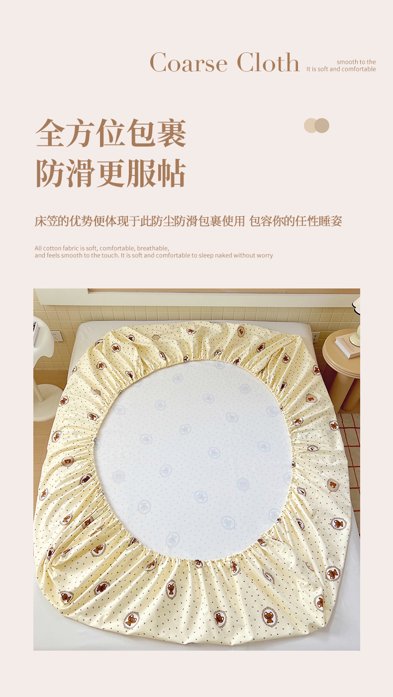 商品名称:春皖家纺 2026新款全棉老粗布工艺款单床笠床笠单件 可爱熊