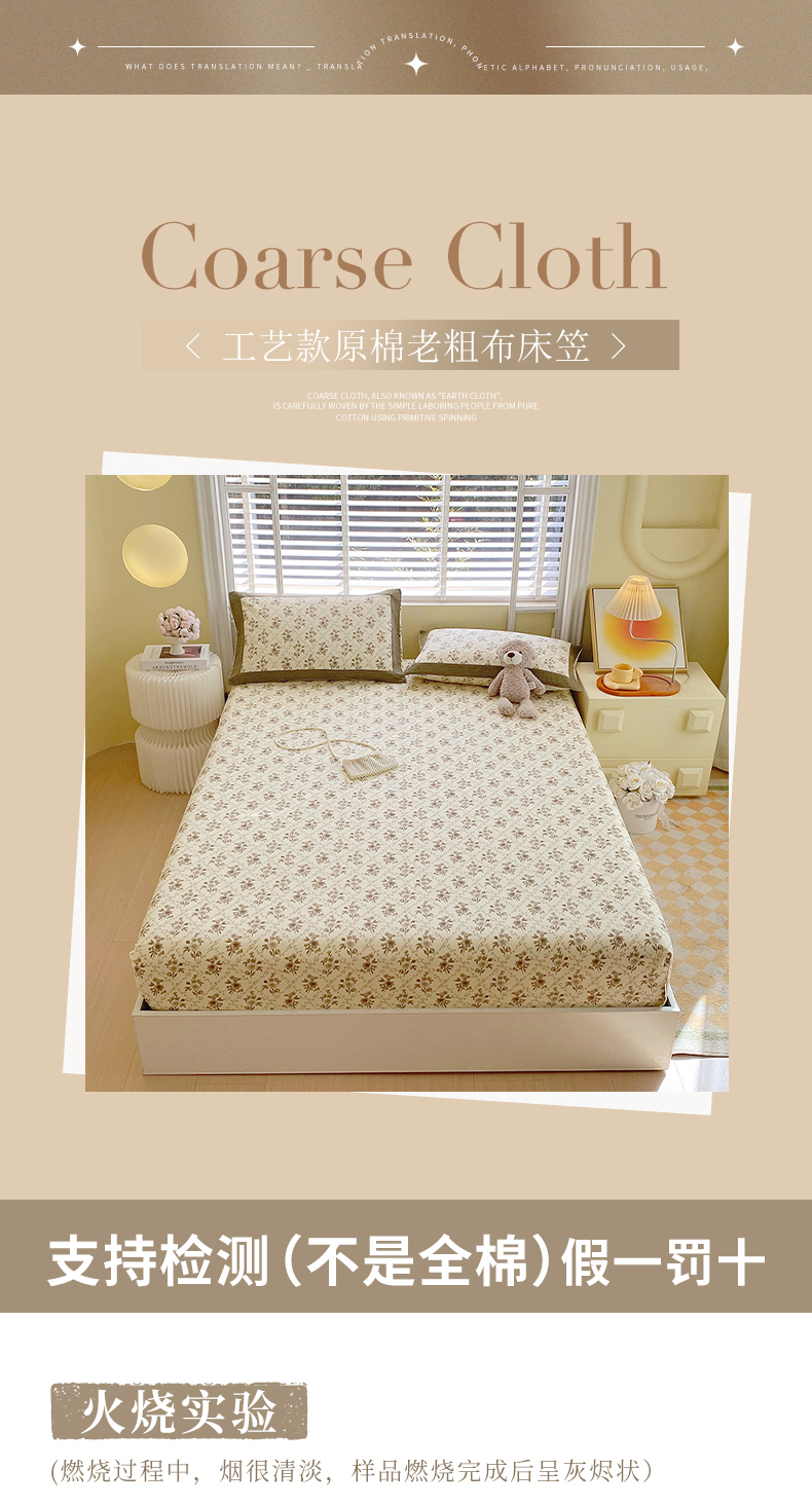 商品名称:春皖家纺 2026新款全棉老粗布工艺款单床笠床笠单件 织梦