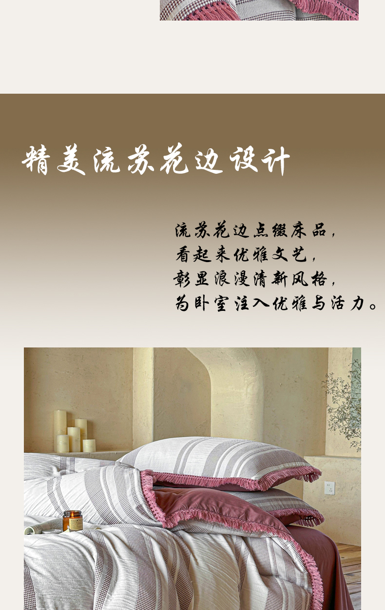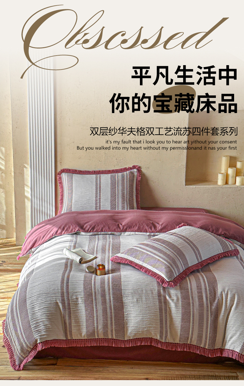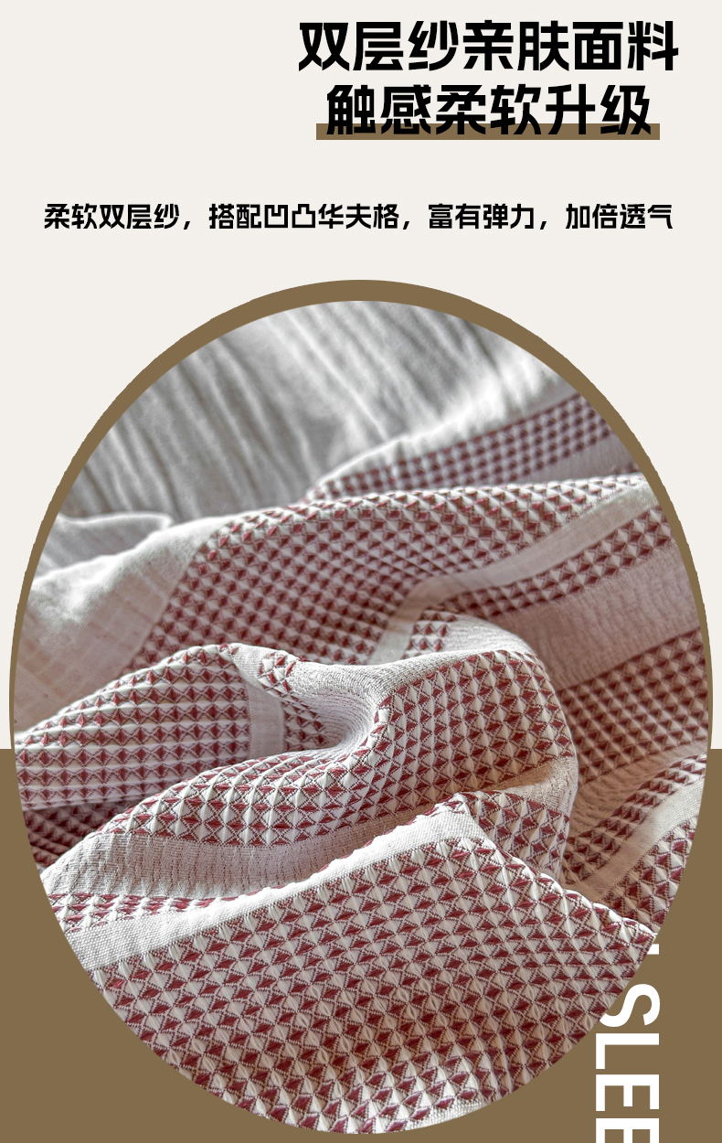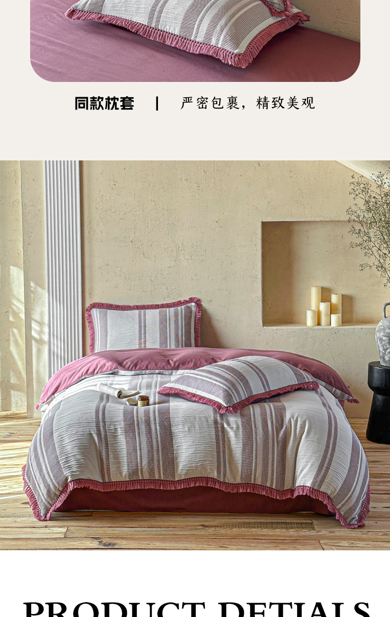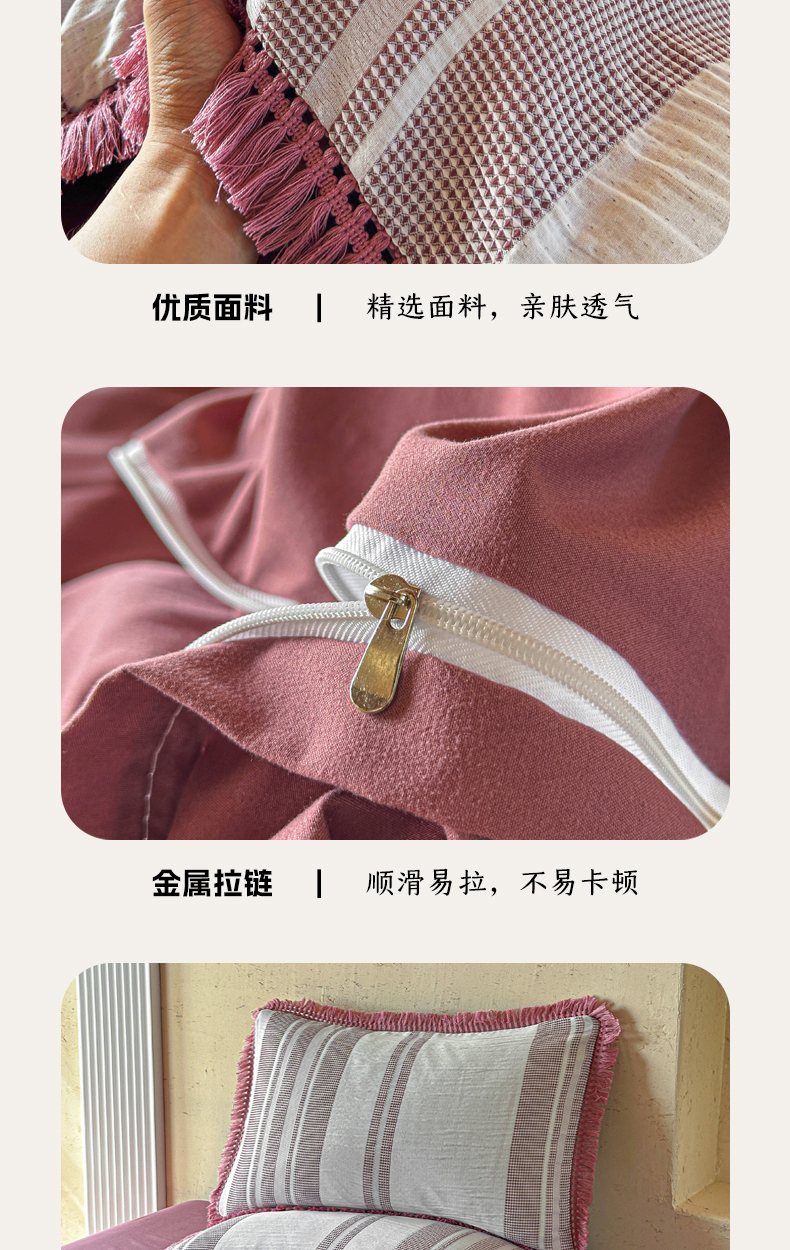 当前位置: 91家纺网 > 商品网购 > 床品套件 > 四件套 > 色织四件套 > 缘生活 2026新款色织提花双层纱华夫格流苏四件套 双工艺流苏-豆沙红